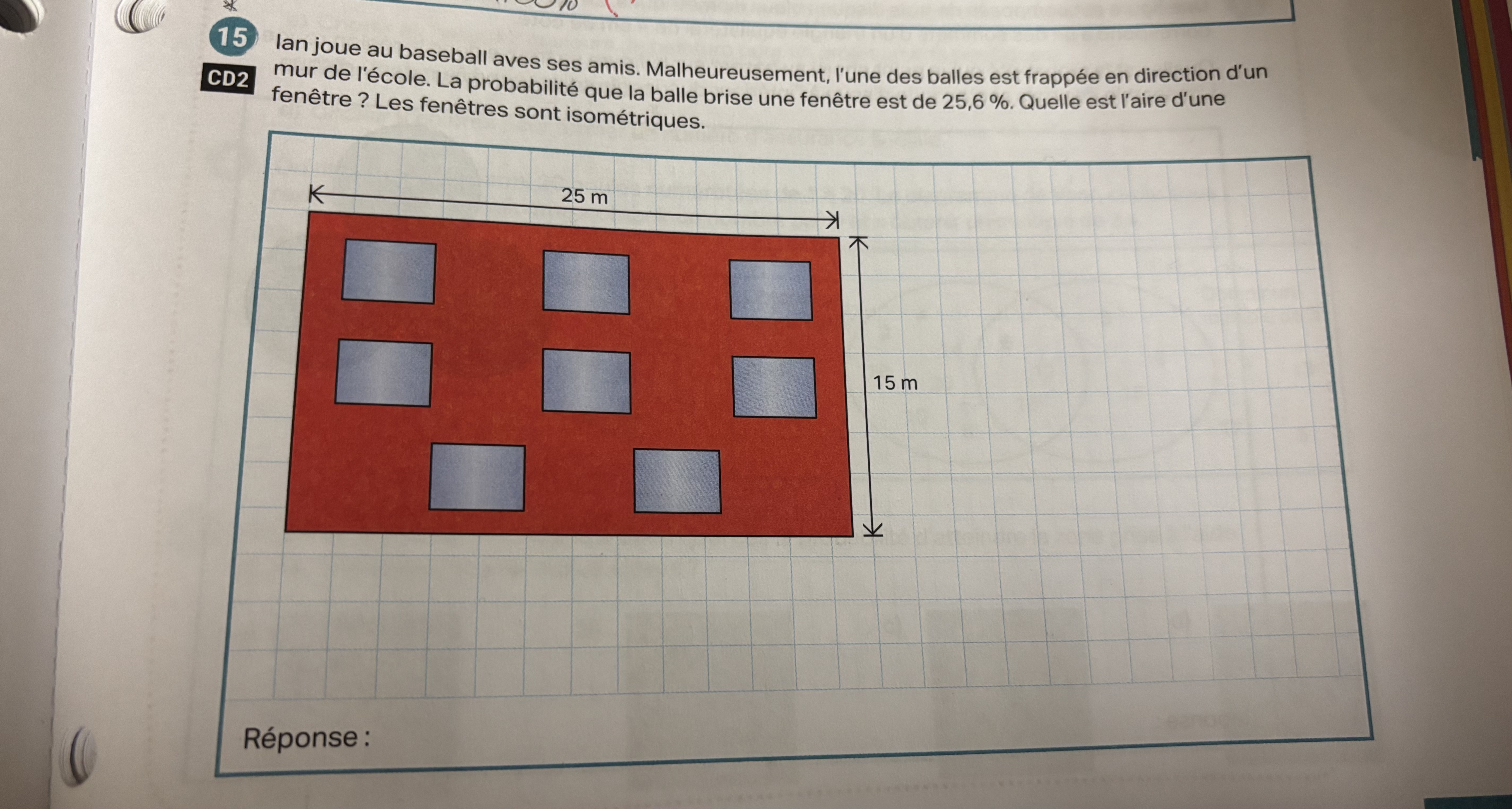 Secondaire 3 • 2mBonjour! Je bloque à ce problème et je demande mis à part l’aire du rectangle, quel est le périmètre des fenêtres?