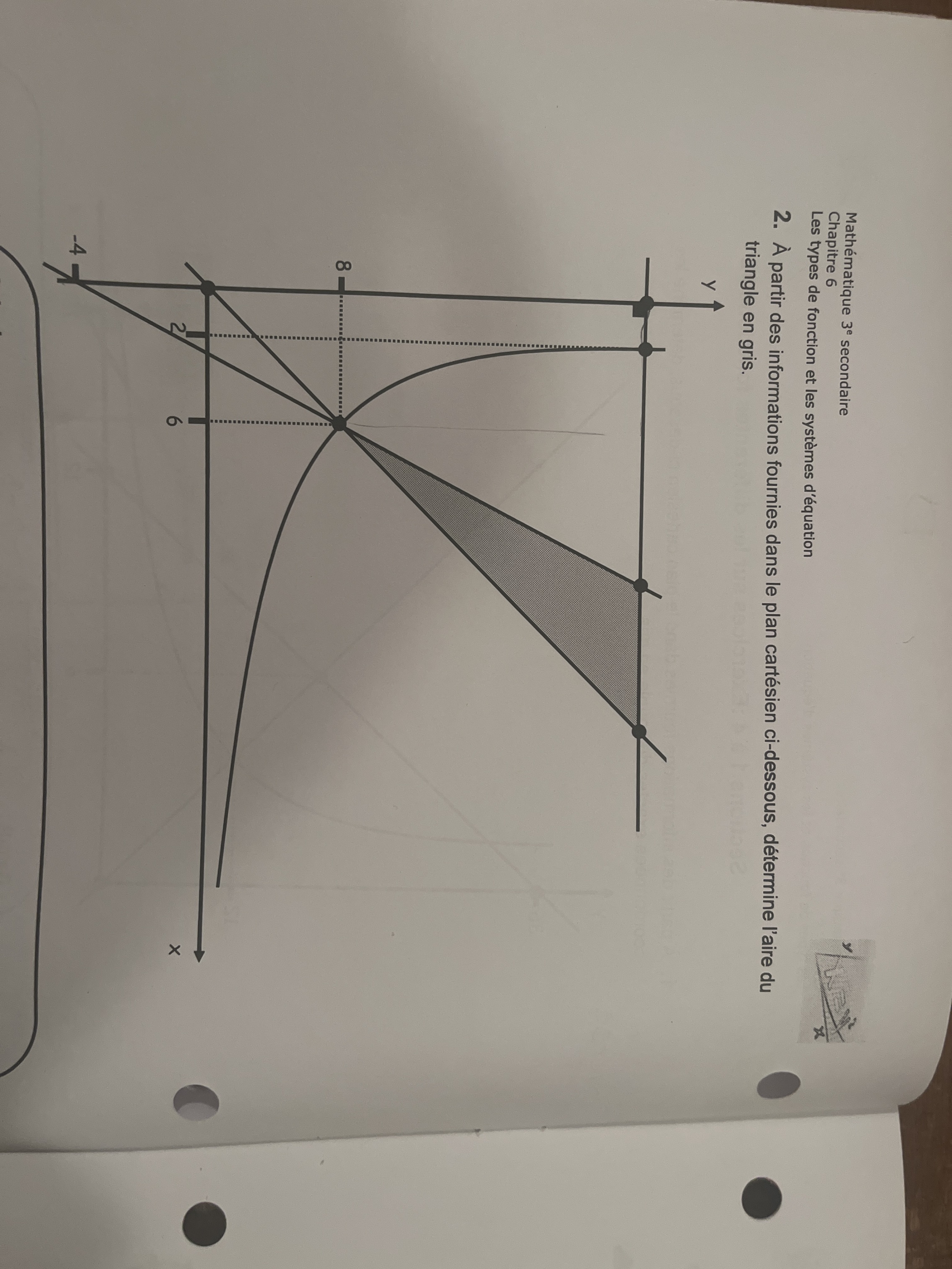 Secondaire 2 • 1aJe suis en géométrie analytique et j'ai besoin d'aide sur comment trouver l'aire d'un triangle à partir d'une équation (y=mx+b) et un point (x,y).