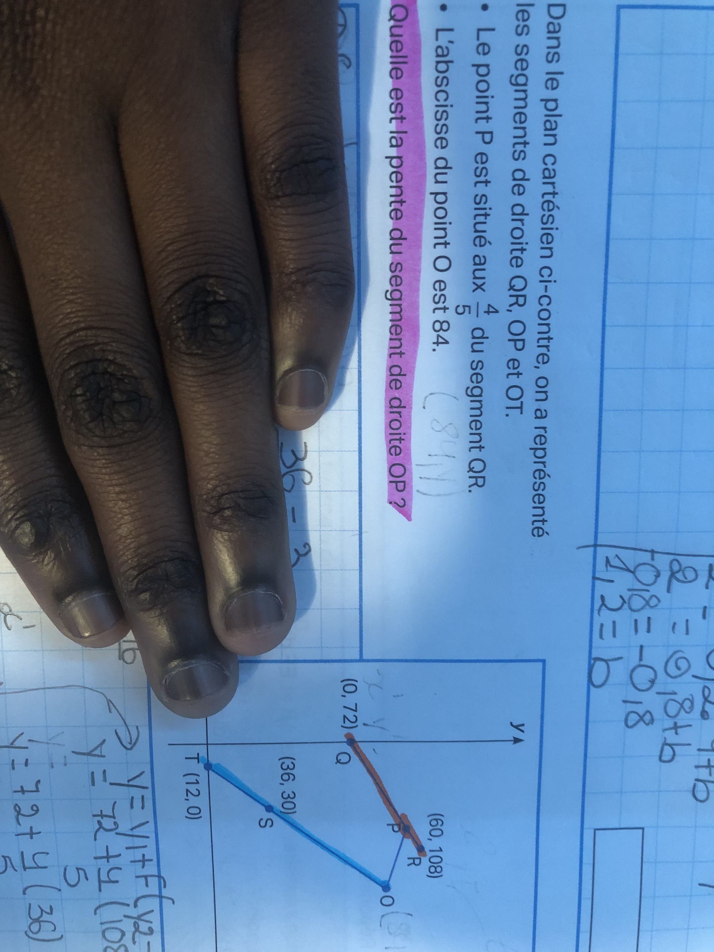Secondaire 5 • 2mPour le b) l'ordonnée à l'origine ma donné 0 donc je trouve que ce n'est pas normal que ça serait y=1/3x+0 donc pouvez vous m'aider ?