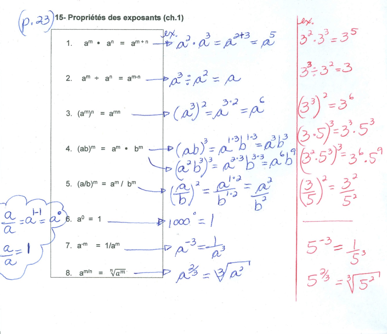 Secondaire 3 • 2mbonjour! j’aimerais avoir des exercices qui mettent en pratique les propriétés des exposants sur la photo s’il vous plaît. merci!