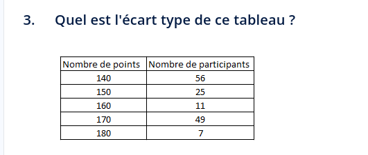 J'ai de la misère avec l'écart type dans le tableau. Je ne sais pas ce que je n'ai pas de bon... Pourriez-vous m'aider ? Merci !