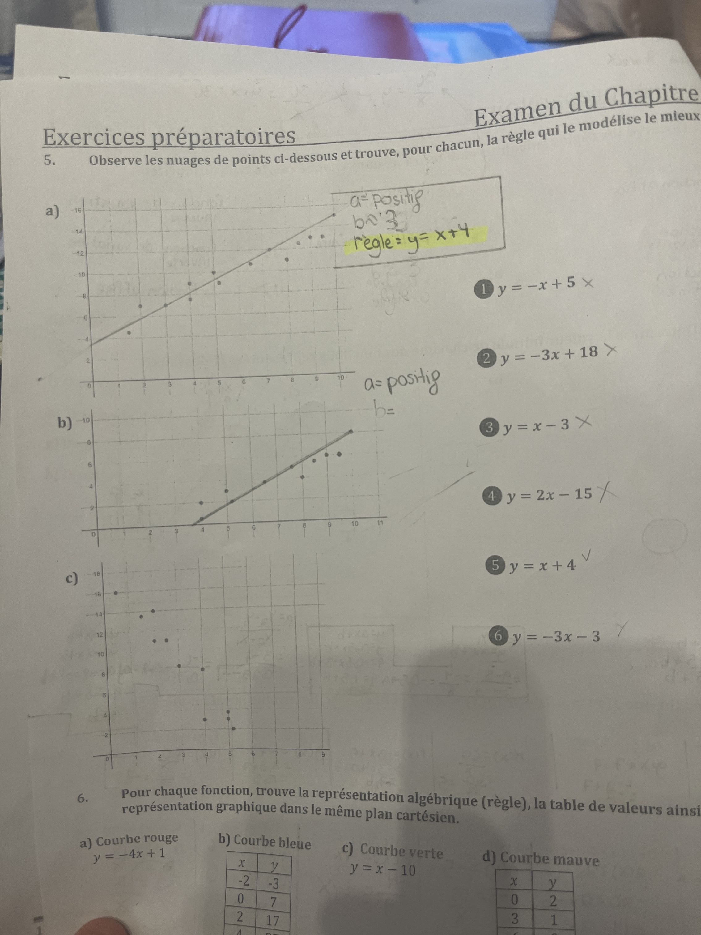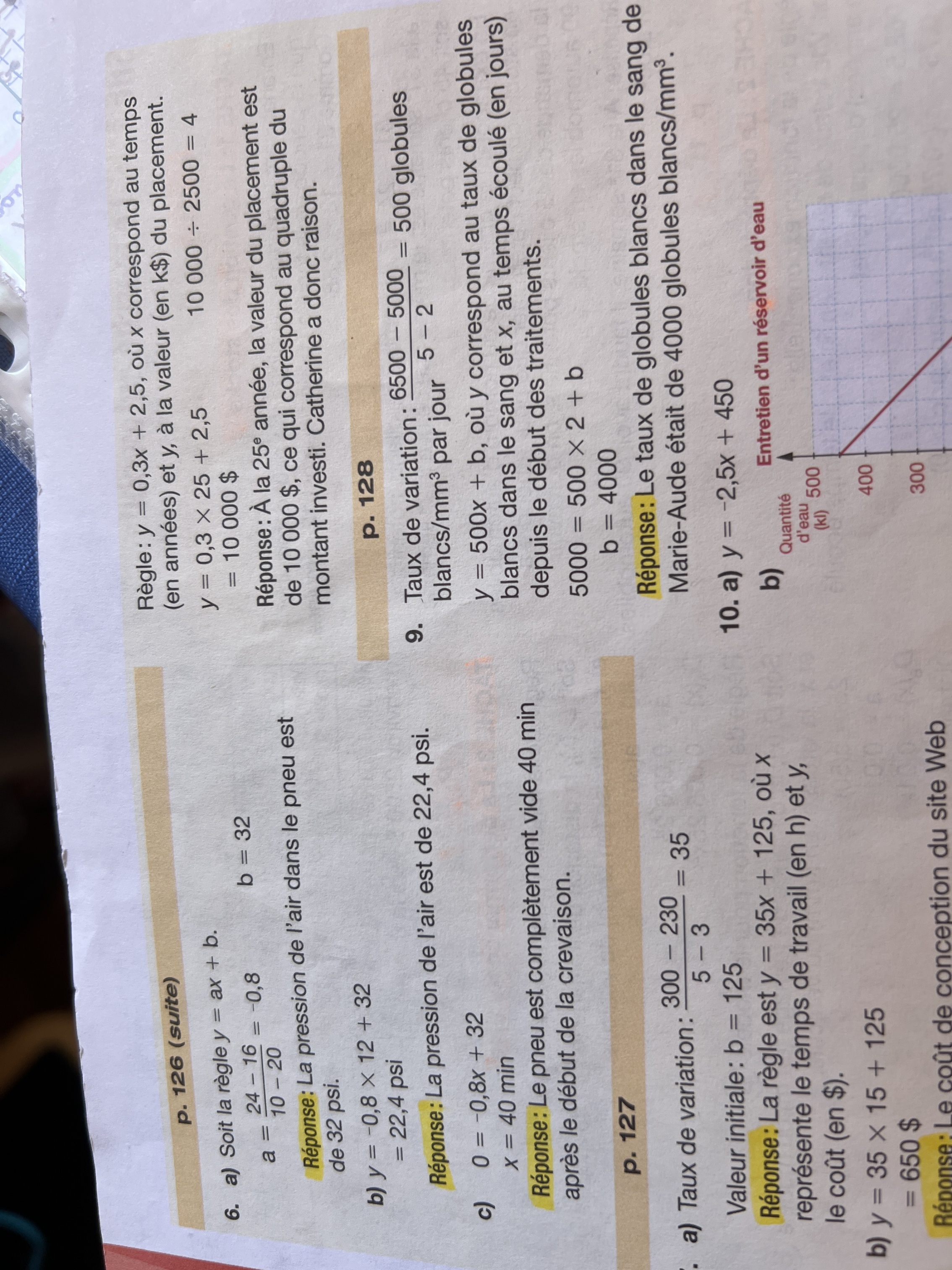 je ne comprend pas le #5 b) comment je remplis le tableau je ne sais pas quel équation je dois faire et pour la question #6 d’où viens le b=32 (ces indiquer sa dans le corrigé).