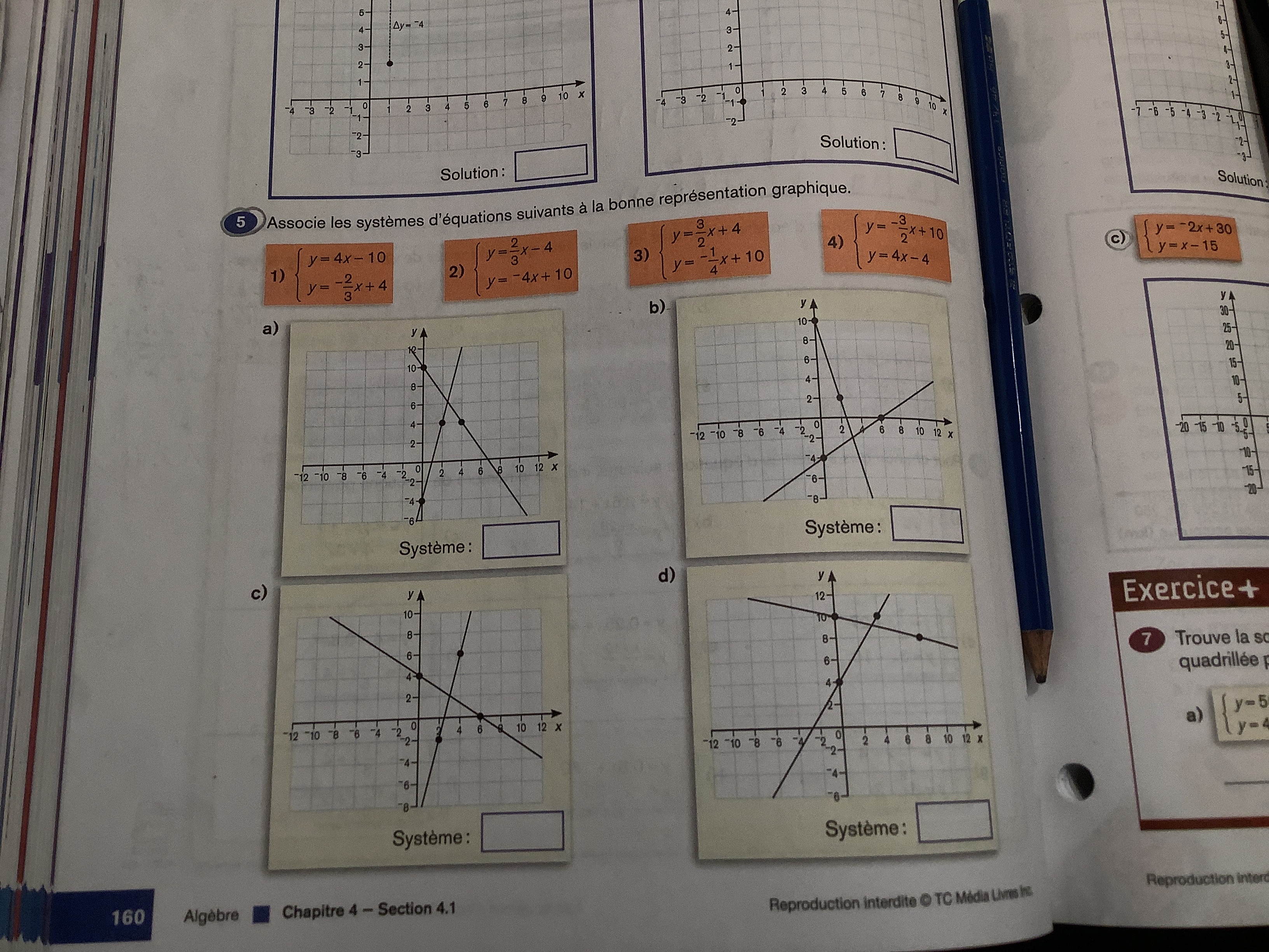Comment pouvons nous associés des systèmes d’équations à des représentations graphiques? Devons nous faire la solution (X,Y) ou bien il suffit seulement de regarder les B, X, Y, en bref le graphique.