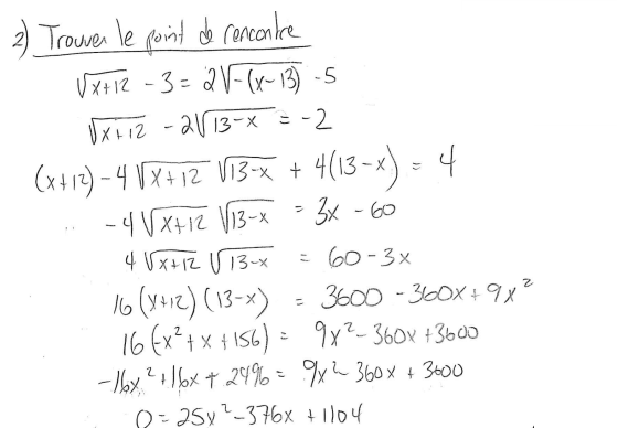 Sur l'image, vous pouvez voir un système d'équations avec 2 fonctions racine carrées. Comment devrais-je quel point est le bon? Aussi, est-ce normale d'avoir une couple solution qui n'a pas les mêmes valeurs de y ou est-ce normale et c,est le pont qu'il faut éliminer?