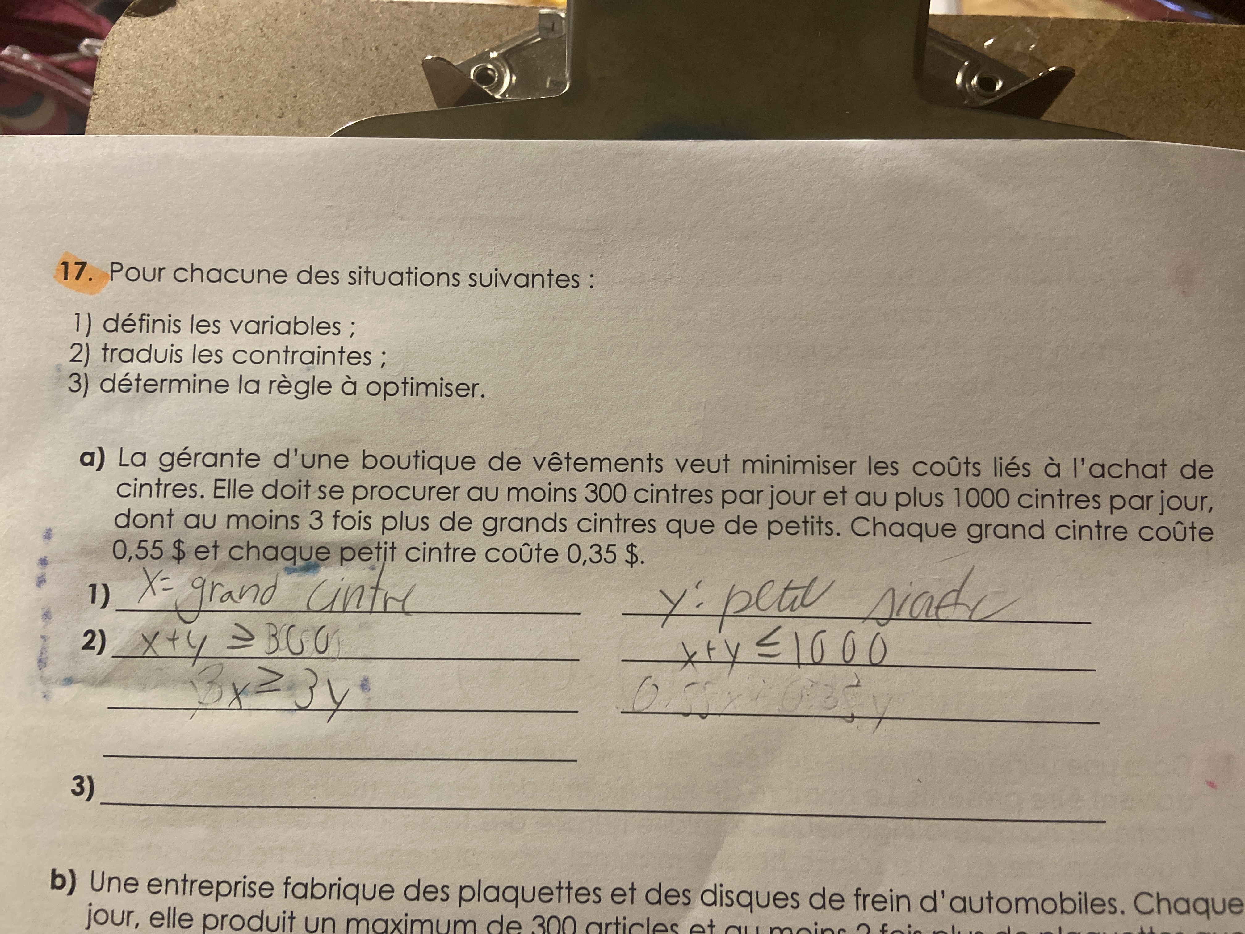 Secondaire 5 • 1abonjour dans une de mes excerise en math il parle de determiner la regle à optimiser mais je ne sait pas qu’est-ce que c’est et ce que je doit faire merci