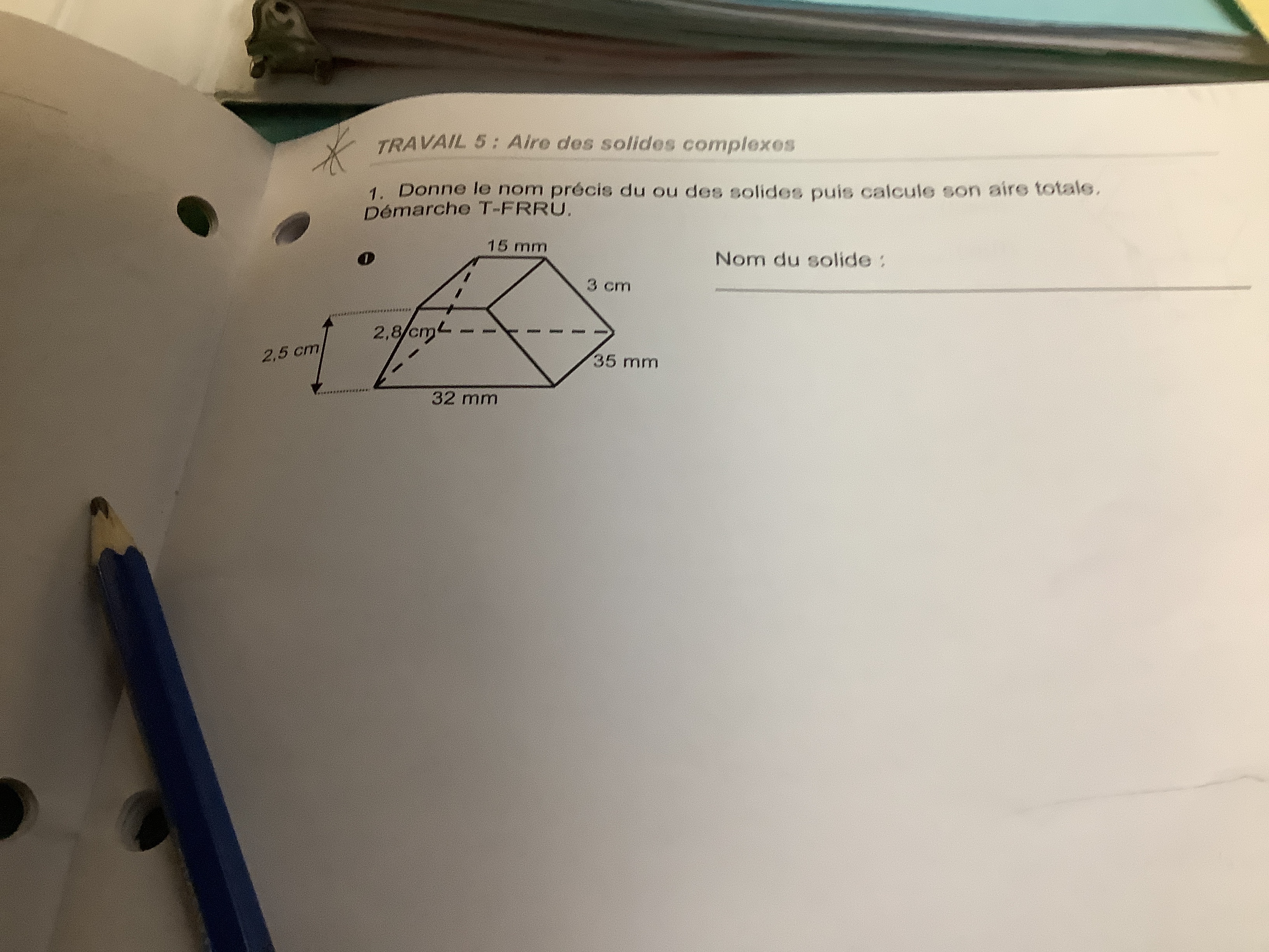 Secondaire 2 • 2aJ’aurai une question je ne ses pas calculer l’aire du solide complexe si vous pouvez m’expliquer merci
