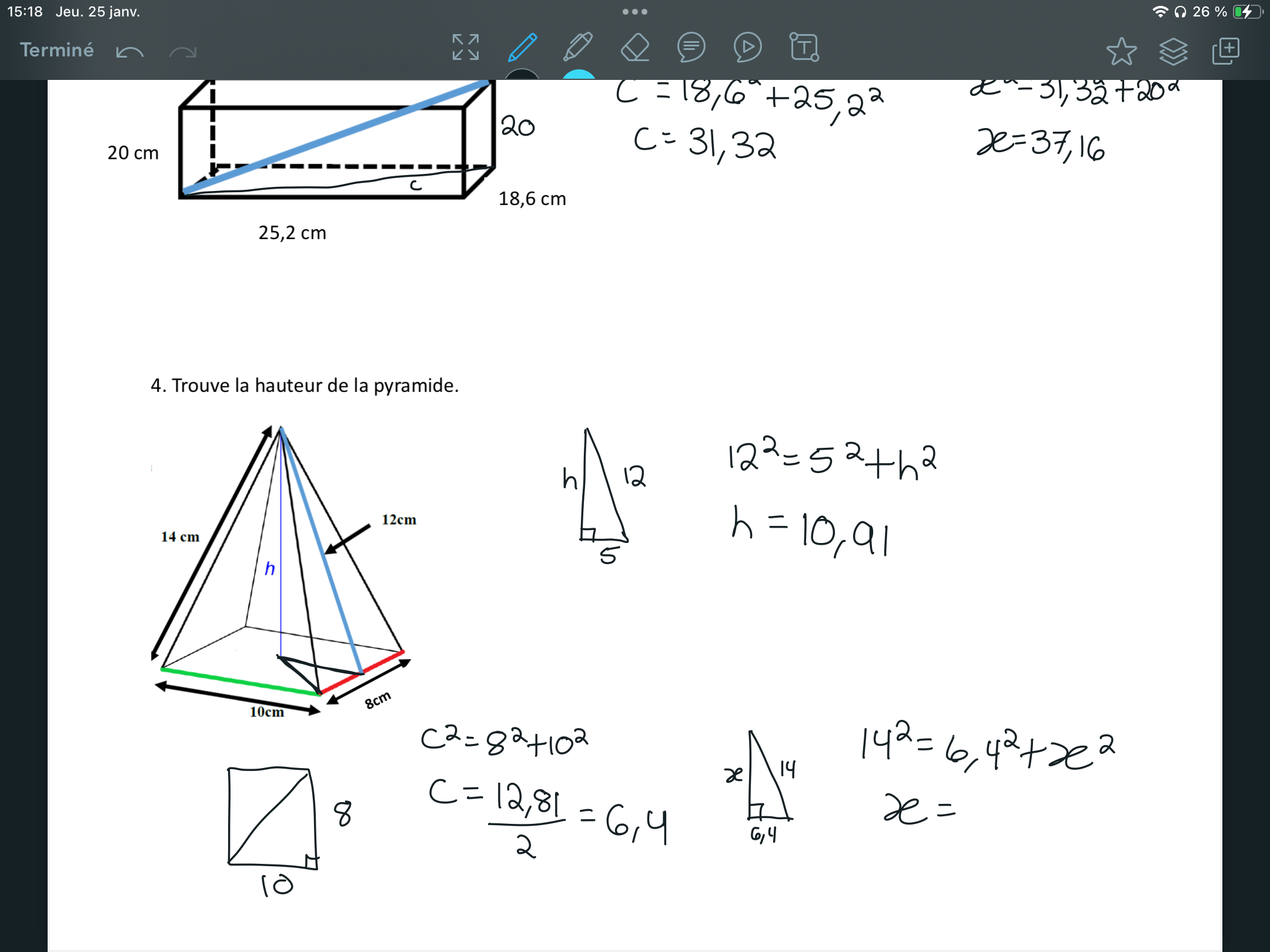 Secondaire 3 • 2aBonjour avez vous de fiches sur pythagore dans l’espace, sur les pyramides en 3D?