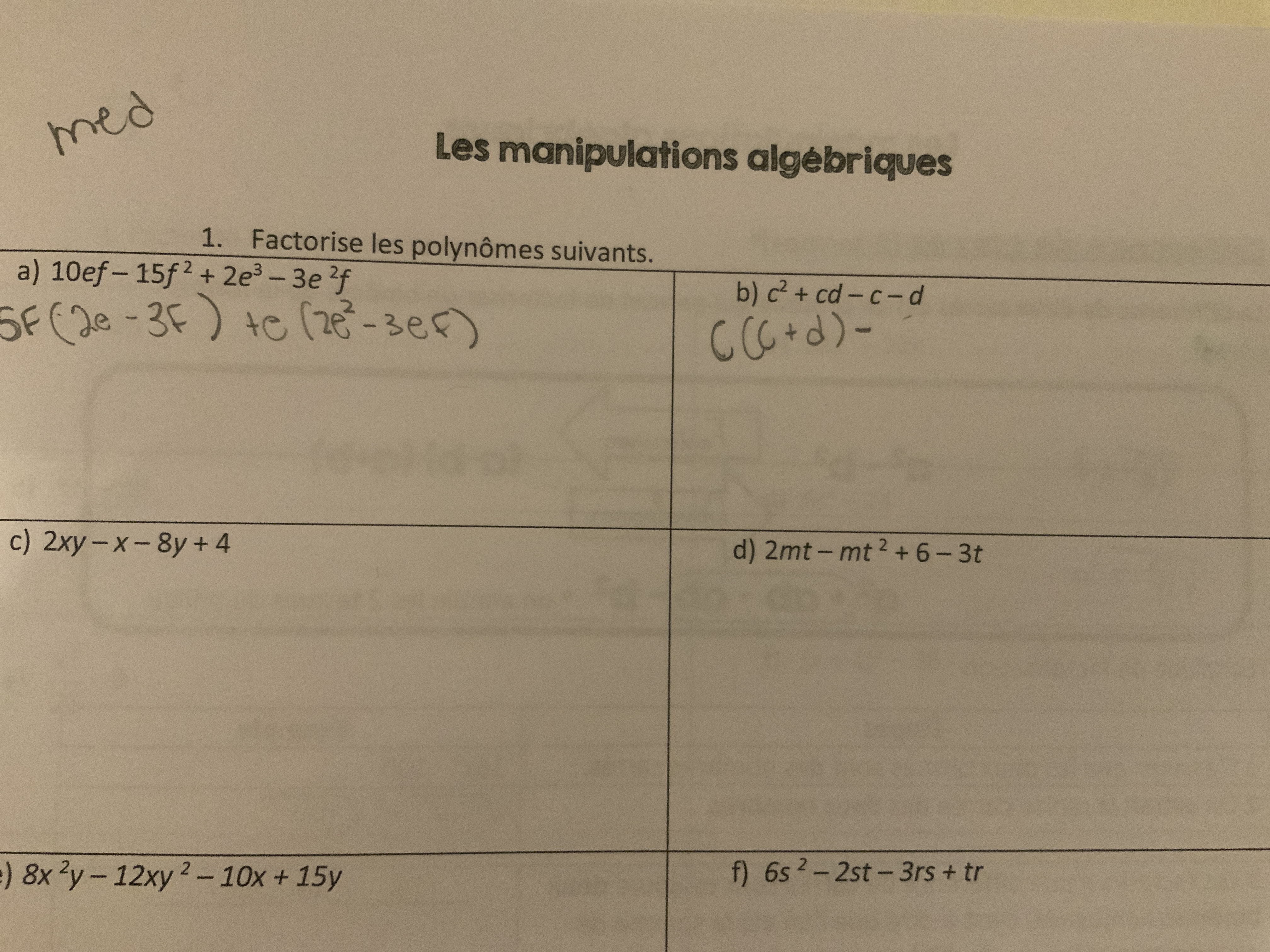 Secondaire 3 • 2mj'aurais besoin d'aide pour la lettre c) et f)