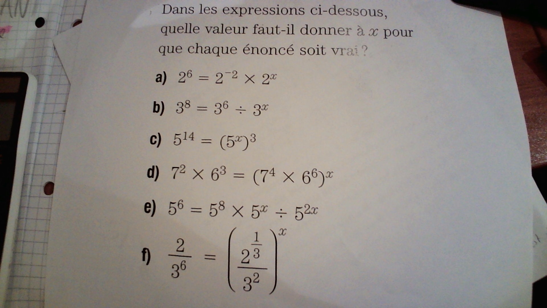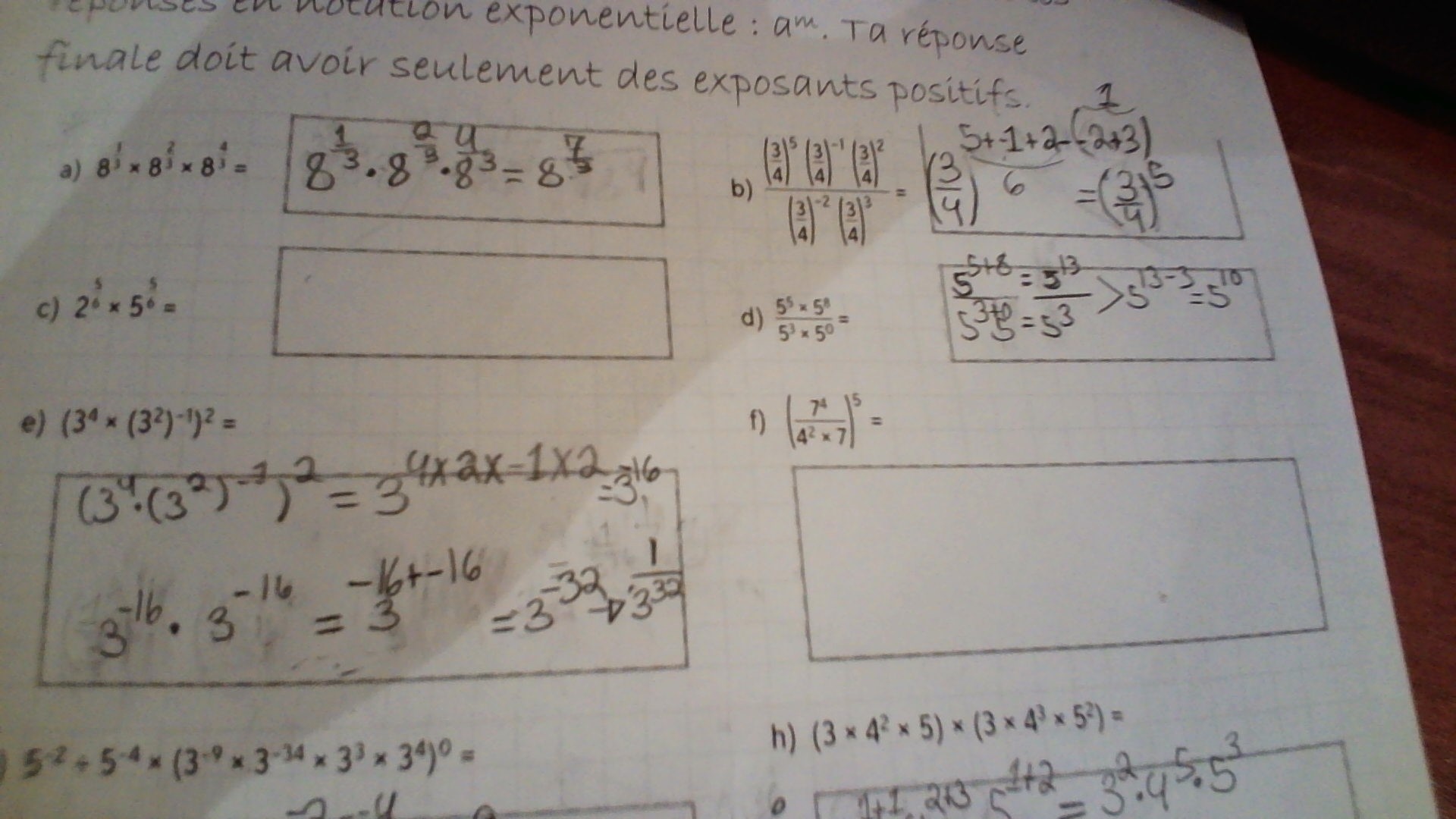 ma question est la suivante pouvez-vous m’aider avec ce devoir s’il vous plaît ?Je n’ai pas compris parce que dans le A lorsqu’on doit simplifier en utilisant la loi de l’exposant, il faut s’assurer que on a la même base.Par contre, dans ce numéro il n’y a pas de base semblable.