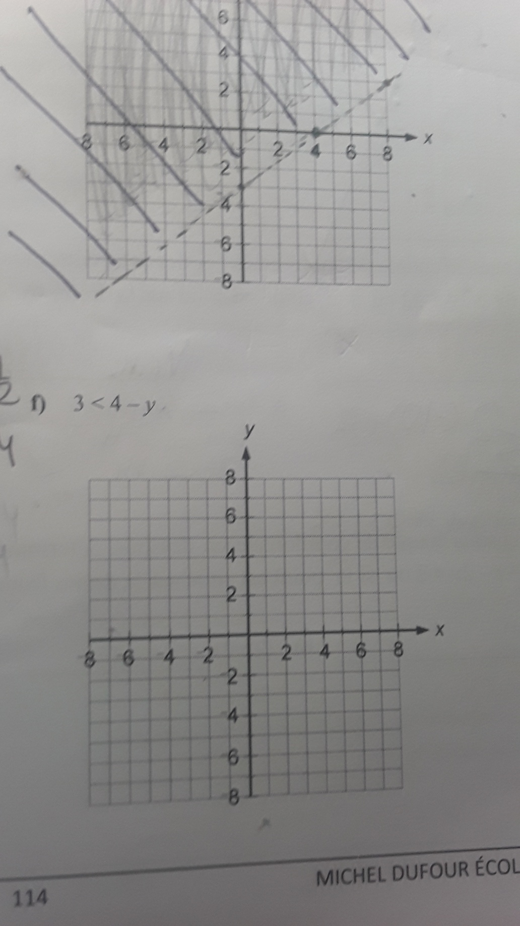 Secondaire 5 • 2mJe ne sais pas quoi faire avec c'est deux problème. Dans le premier problème le c) il n'y a pas de y donc je ne sais pas quoi faire aidez moi. Dans le deuxième problème le f) je ne sais pas quoi faire puisqu'il manque le x. Aidez-moi