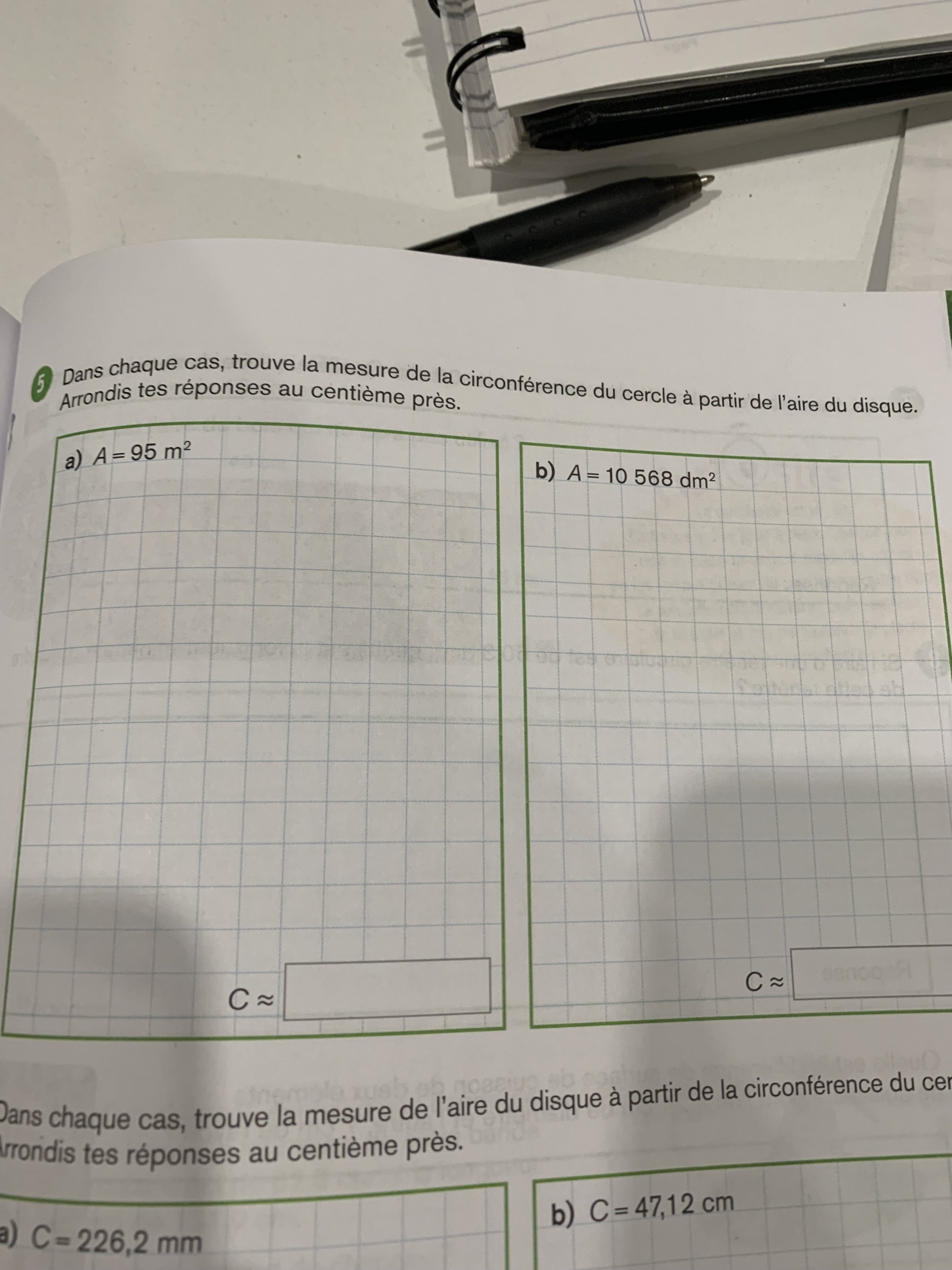 Secondaire 2 • 2aBonjour! En math nous devons trouver l’aire de figure et maintenant nous sommes rendu à trouver l’air d’un disque et je ne comprend pas! Quelqu’un peut m’aider