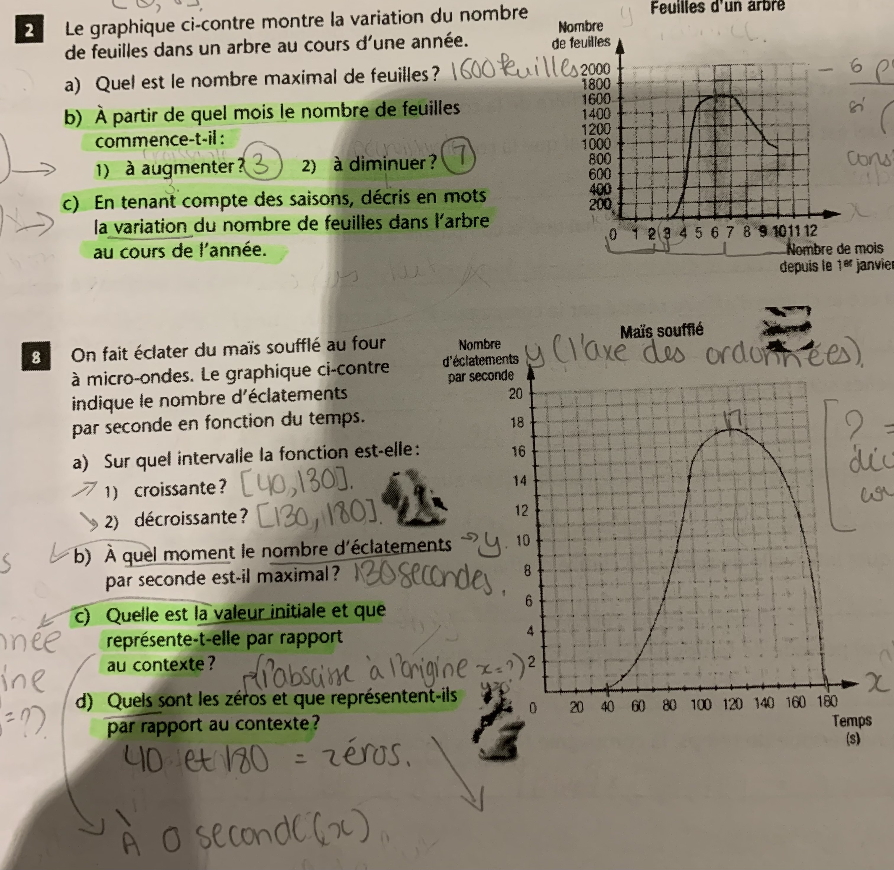 Je sais pas exactement quoi répondre à des questions de type “ “que représente-ils par rapport au contexte” et “décris en mots la variation du nombre de feuilles dans l’arbre au cours de l’année”.