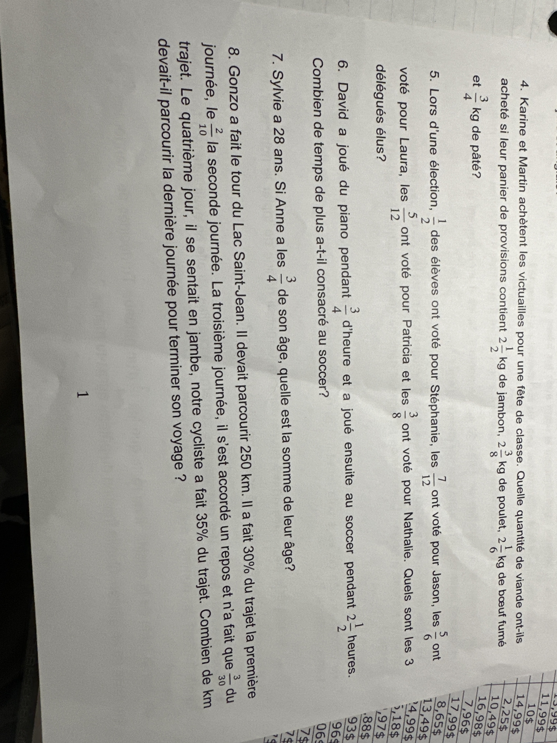 Primaire 4 • 2apouvez vous composer 2 question mathématiques de la fraction 1/8