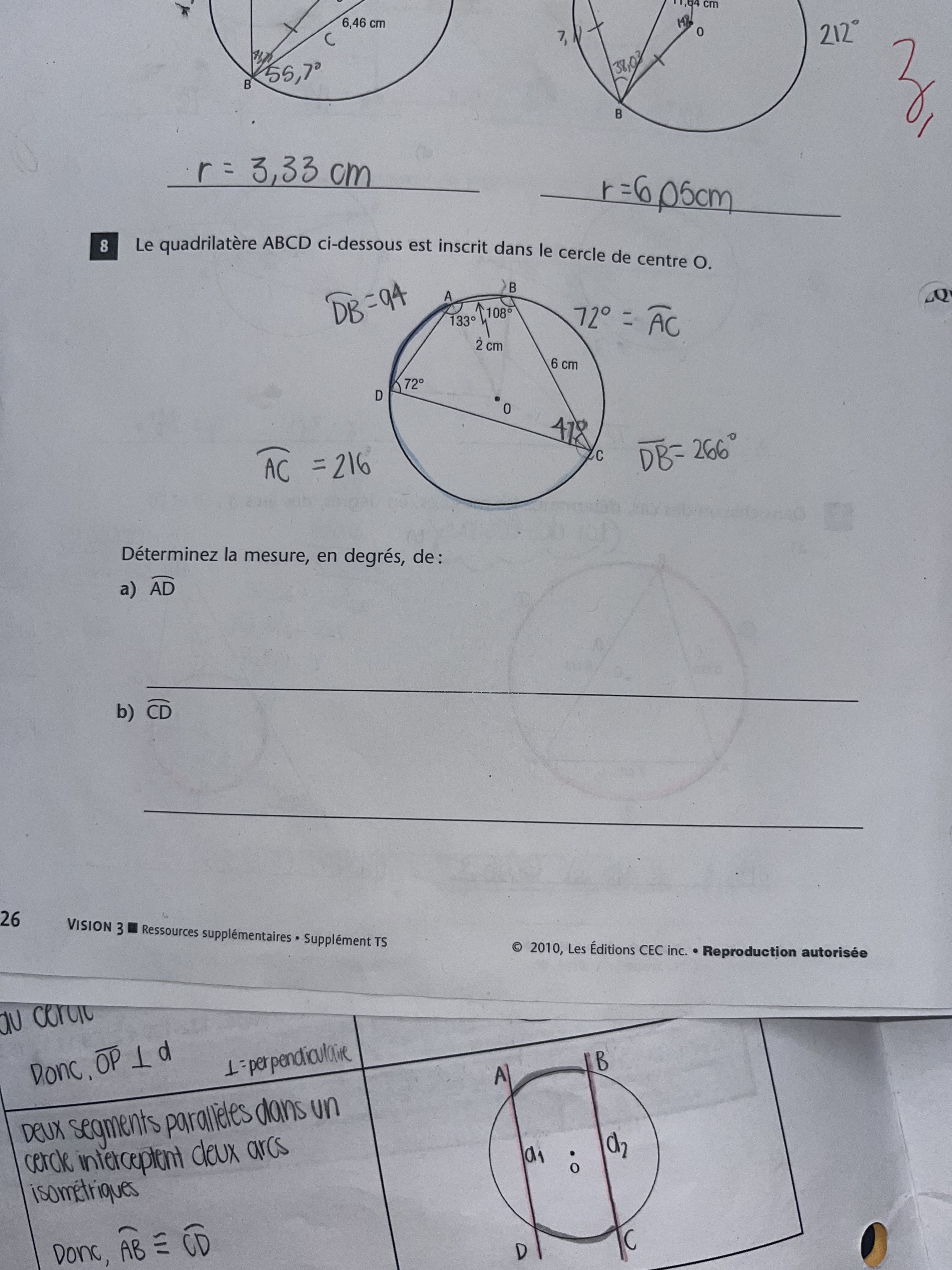 Secondaire 5 • 2aJe n’arrive pas à faire ce numéro, car encore une fois il me manque une mesure. L’énoncé que je dois utiliser est celui qui met en relations deux sécantes. J’aurais besoin de la démarche pour arriver à la réponse (2) svp. Voici le problème, la solution et l’énoncé:
