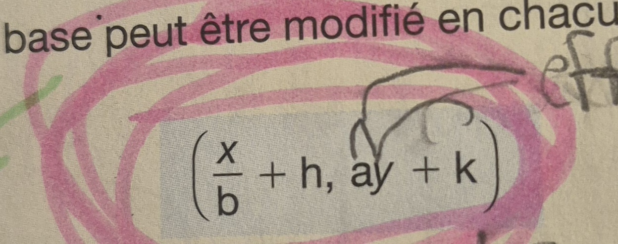 Secondaire 4 • 2mBonsoir, J'ai pas compris comment tracer mon graphique je viens de vérifier sur corrigé c'est tout à fait différent je sais pas pourquoi mais l'exercice sur paramètres multiplicatifs et additifs voici le corrigé car l'habitude h : 5 on avance translation horizontal et k: 2 on monte en translation vertical et a:1 b:1 pourquoi j'ai eu faux et différent dans le corrigé svp sauver moi même ma prof m'a mal expliqué comment tracer quand j'aurais a et b dans un graphique c'est vraiment important pour mon examen qui sera prochain semaine sauvez moi j'ai tout vu sur YouTube et toujours pas compris 💔💔💔 moi mon habitude j'adore math ma vie est math c'est pour ça j'ai choisi math sn4 grâce à mon réussite sur math cst4 ministère. Merci j'espère vous pouvez vraiment me expliqué avec une bonne technique et démarche merci ❤️