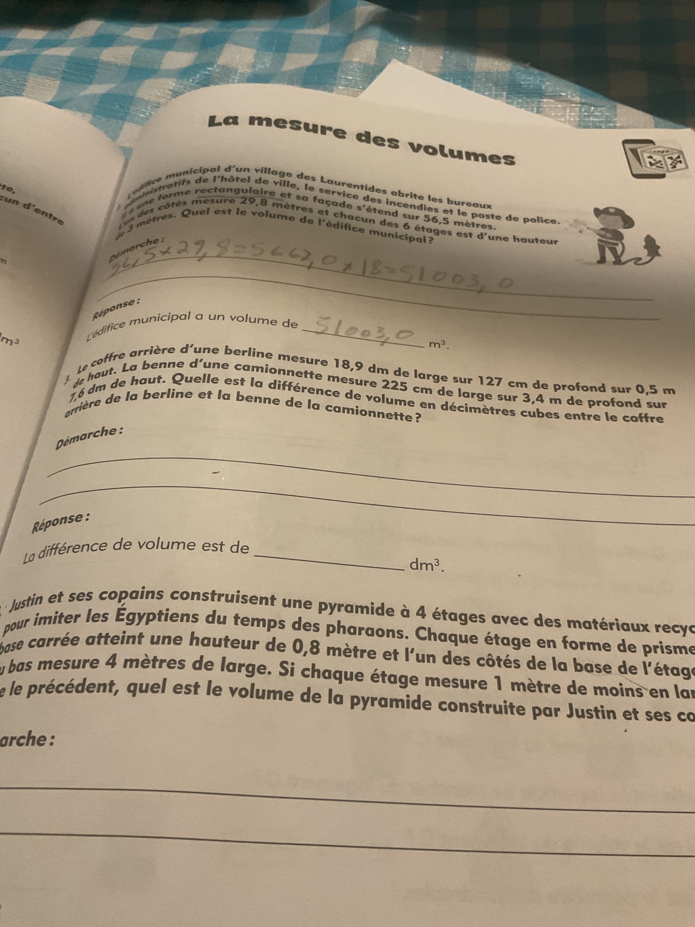 Primaire 6 • 2mEst ce que quelqu’un pourrait m’expliquer la mesure des volumes? Car je suis dessus depuis une heure, et je ne comprends pas. J’ai regardé toutes les vidéos d’allo prof, mais je comprenais pas. Et c’est la question 3 que je comprends pas!! Merci beaucoup