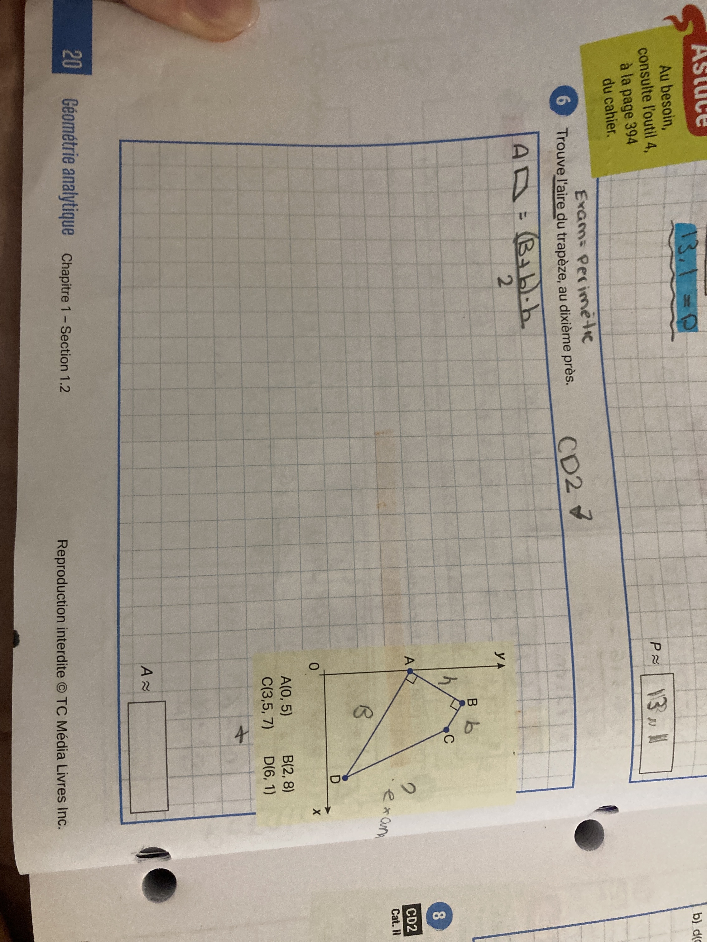 Secondaire 2 • 2mBonsoir c'étais pour vous demander quel étais la formule d'aire du trapèze et du losange