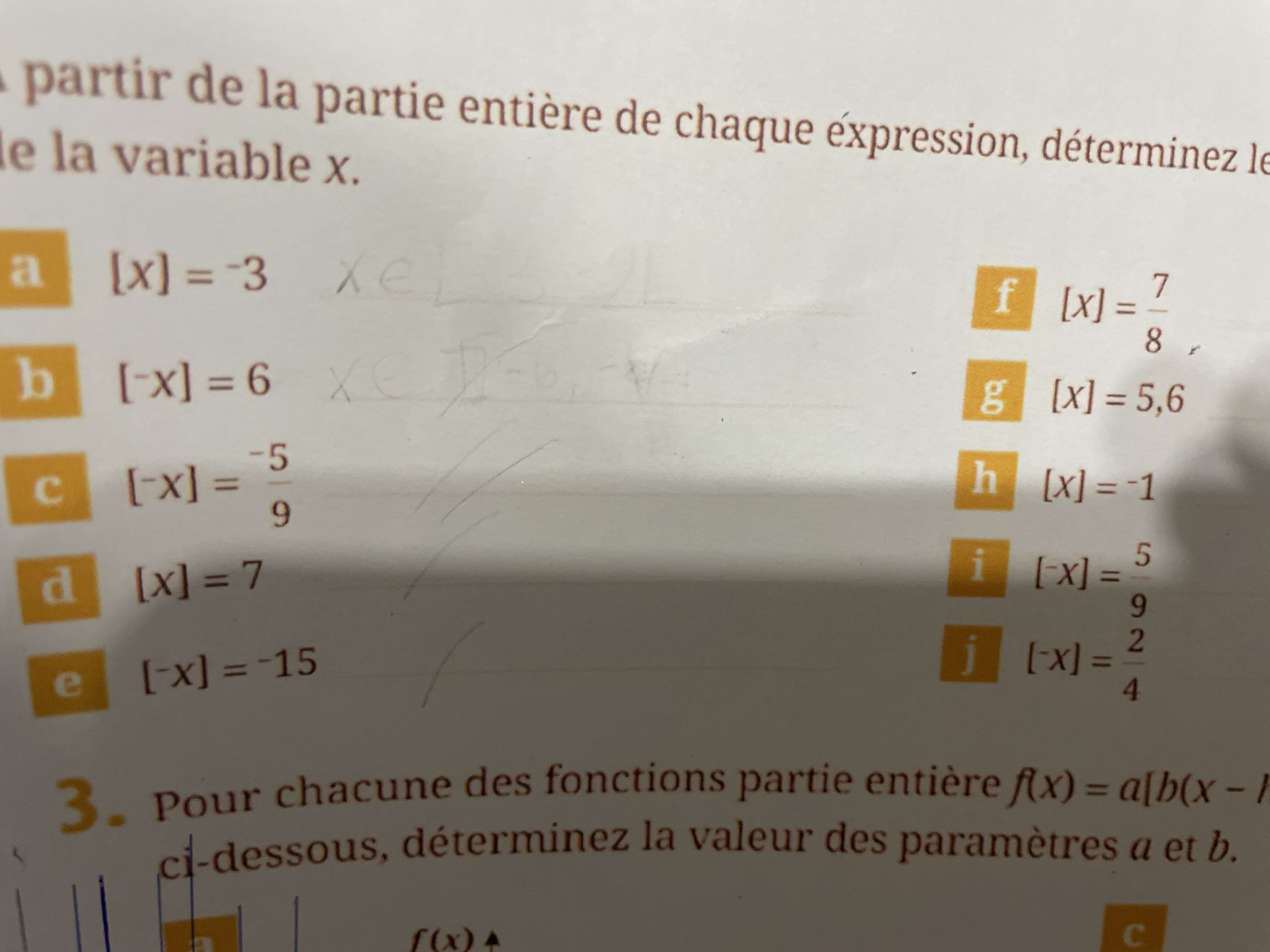 À partir de la partie entière de chaque expression, déterminez les valeurs possibles de la variable x.Merci!