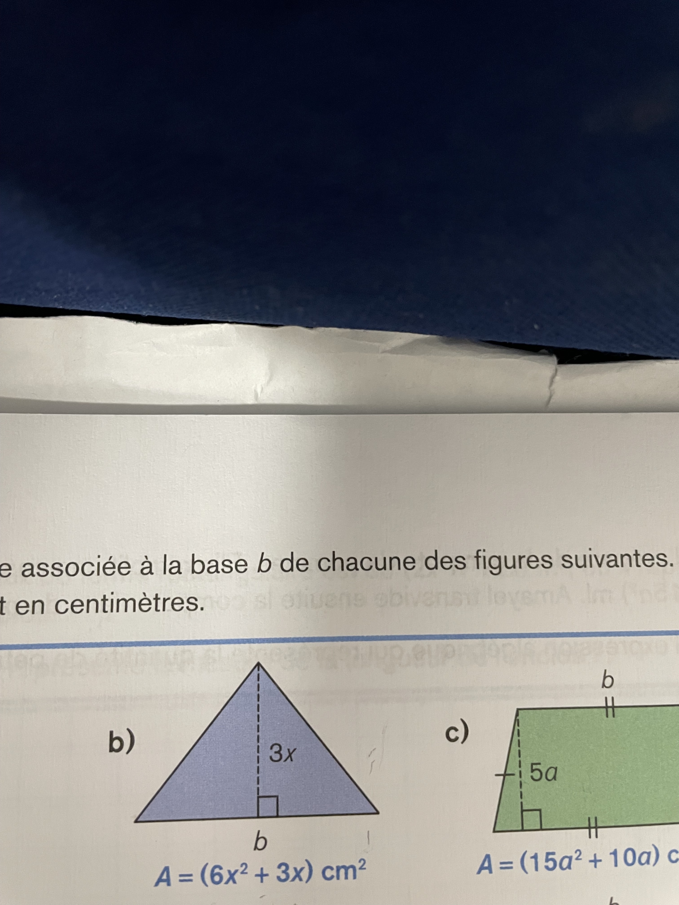 Secondaire 3 • 2aSalut alloprof svp aidez moi à trouver cette base de ce triangle de l’exercice (b)