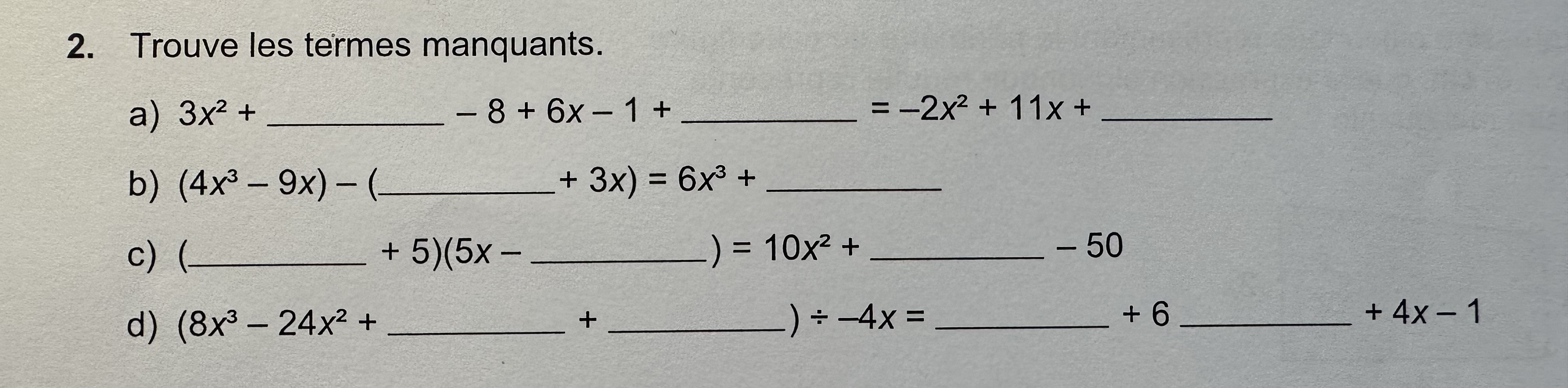 Secondaire 5 • 2aBonjour, Pouvez vous m'aider avec cette exercice. je ne comprend vraiment pas. au moins me dire la démarche. merci beaucoup.