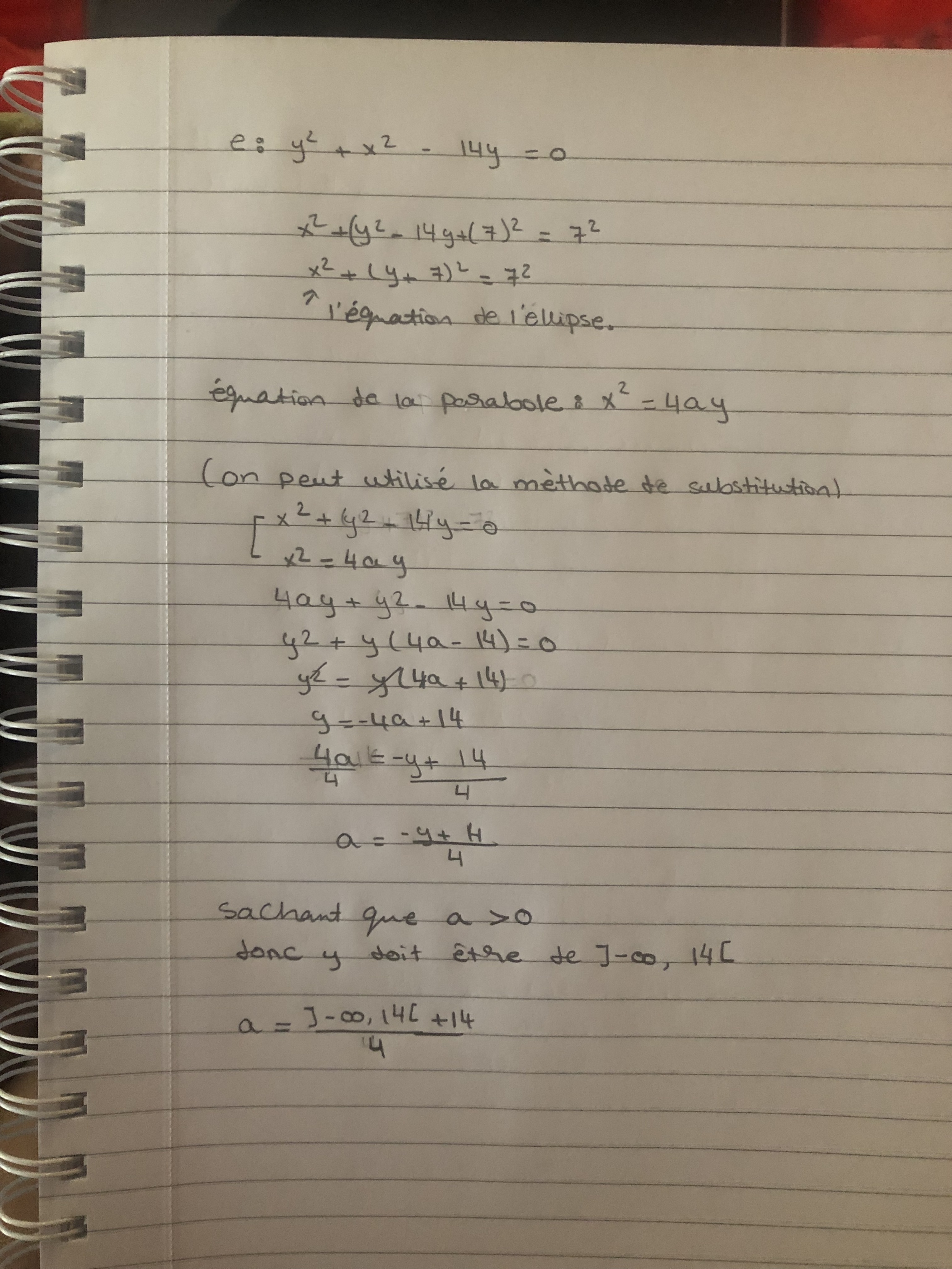 Vous obtiendrez une équation en x qui dépendra du paramètre a. Cette équation sera du second degré.