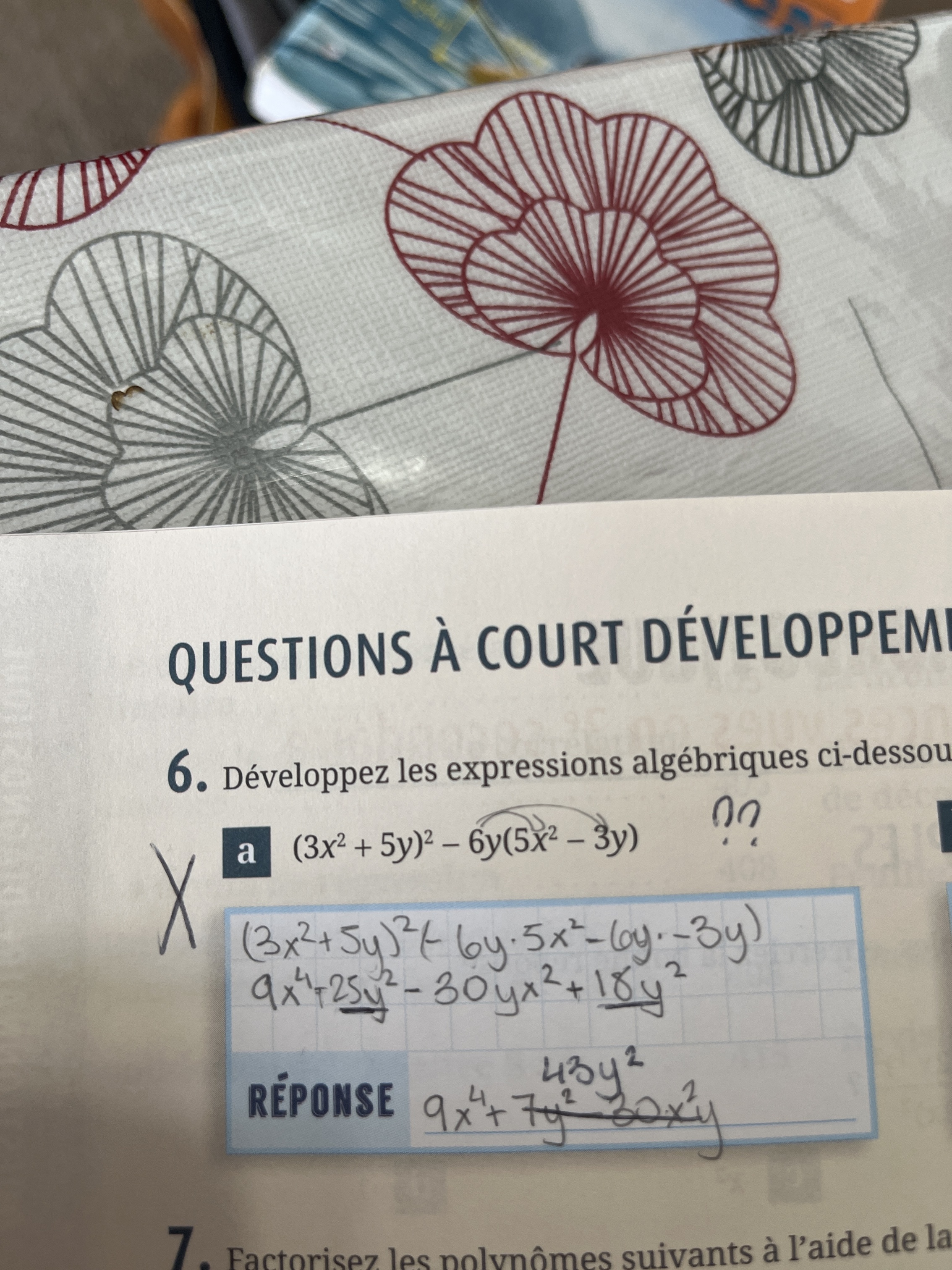 Je suis en maths SN et je revoie un exercice que j’ai mal fait en classe. Ça fait parti de la révision du secondaire 3. J’essaie de refaire l’exercice mais j’ai toujours la mauvaise réponse. Quelqu’un peut m’expliquer ce qu’il fallait faire?