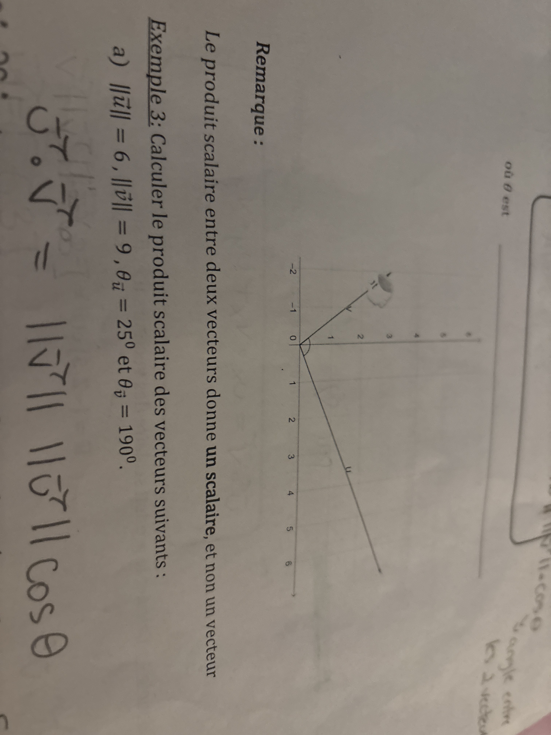 Secondaire 5 • 3mIci j’essaie de refaire un exemple des notes de cours mais je me rend compte que je ne comprend pas bien ce qu’est un scalaire et ce que je dois faire après ?