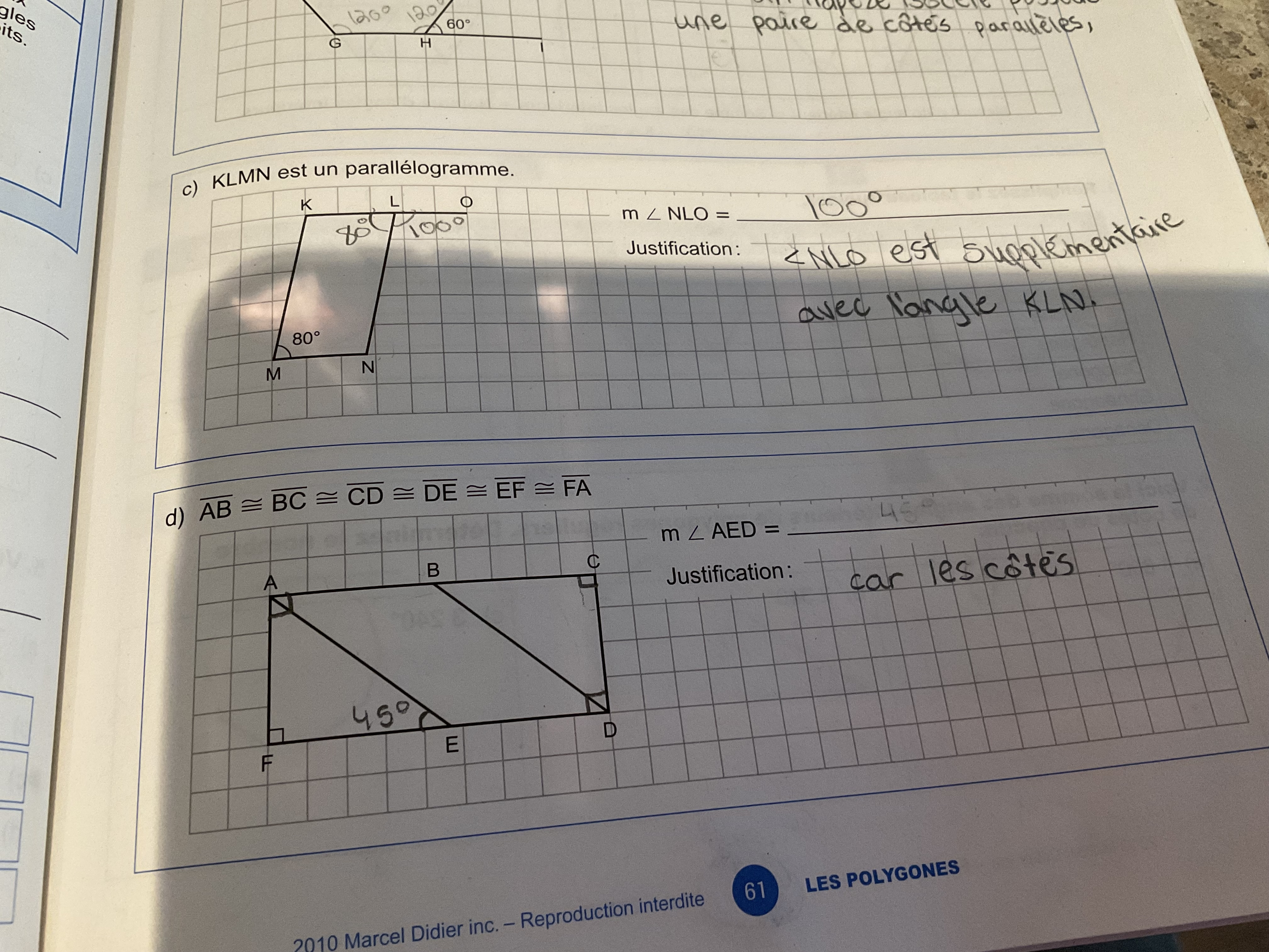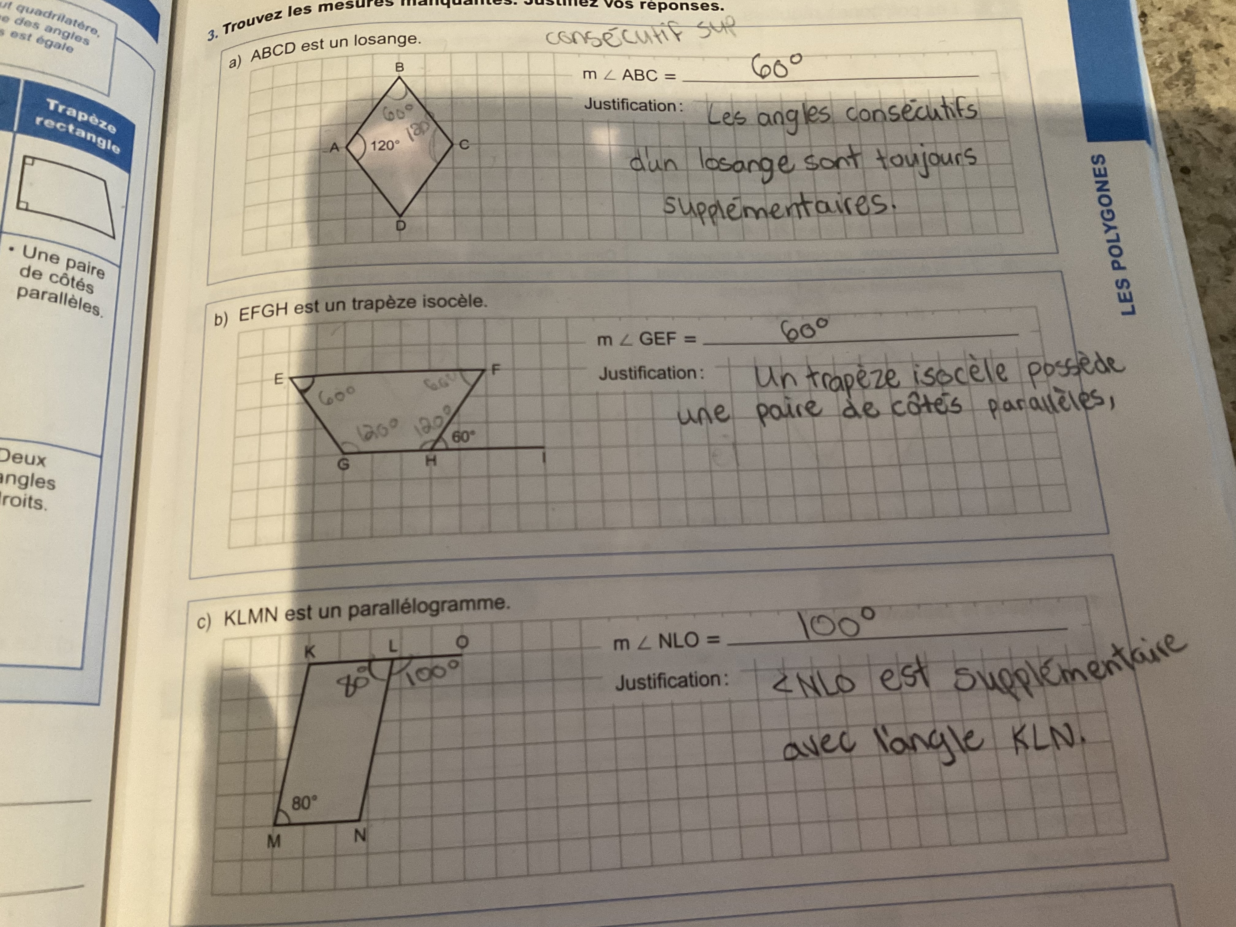 Secondaire 1 • 3mbonjour quelqu'un peux m'expliquer les angles adjacents supplémentaire et les autres angles svp