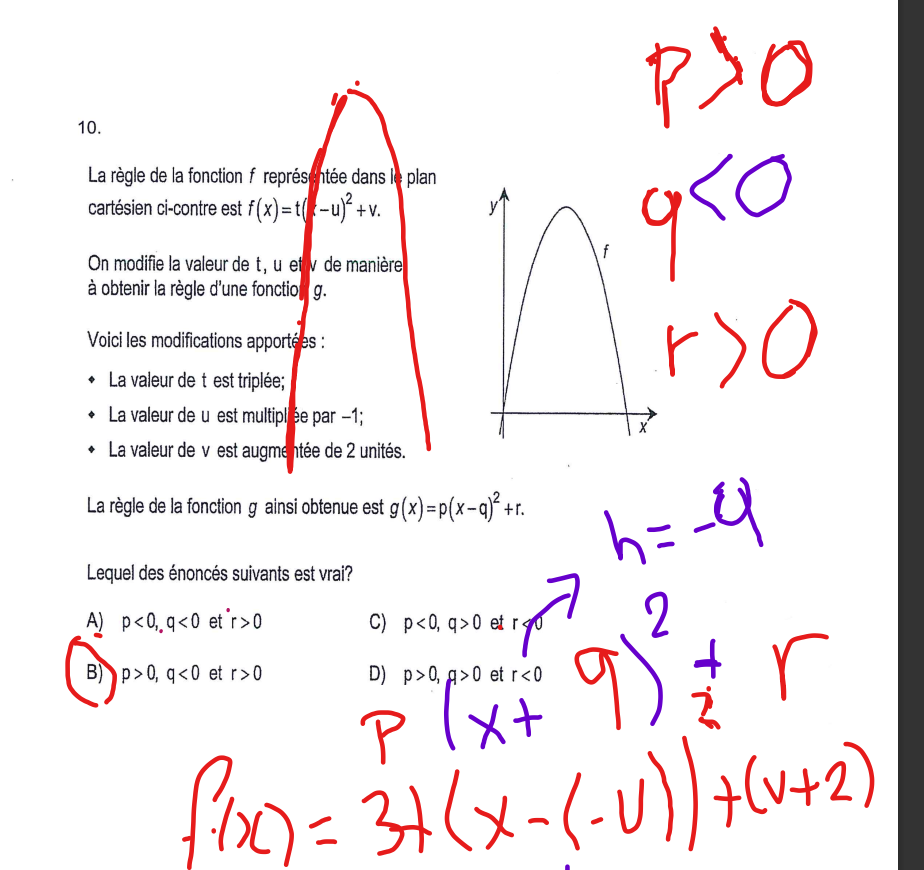 Secondaire 4 • 2asalutest ce que comme justification on pourrait dire qu vu que la valeur de t a triplee alors la parbole est devenue plus ocntractee