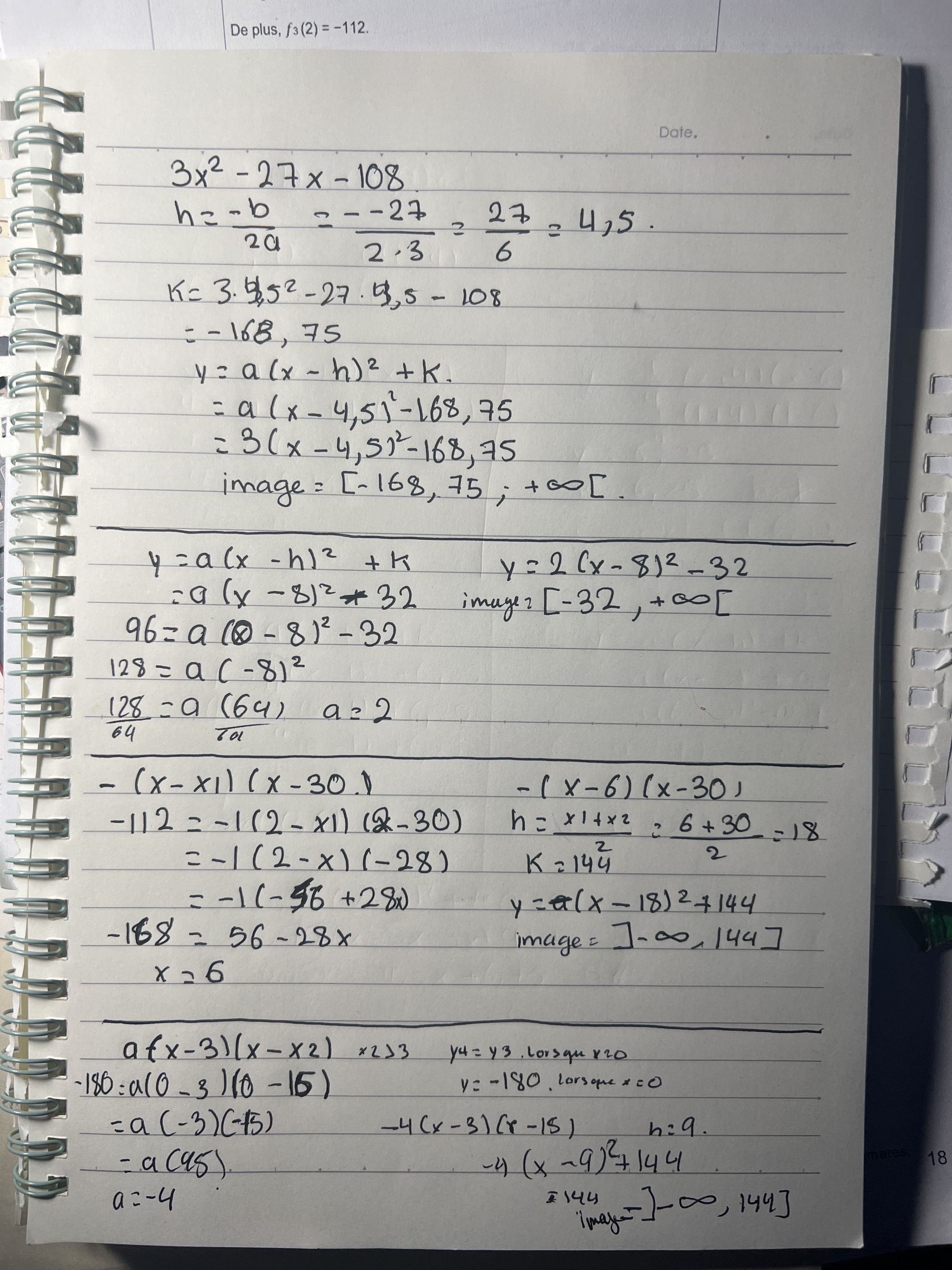 Secondaire 5 • 2aJe n’arrive à terminer le problème. Je pense avoir réussi à trouver le sommet mais après je bloque. Pouvez vous m’aidez. Merci