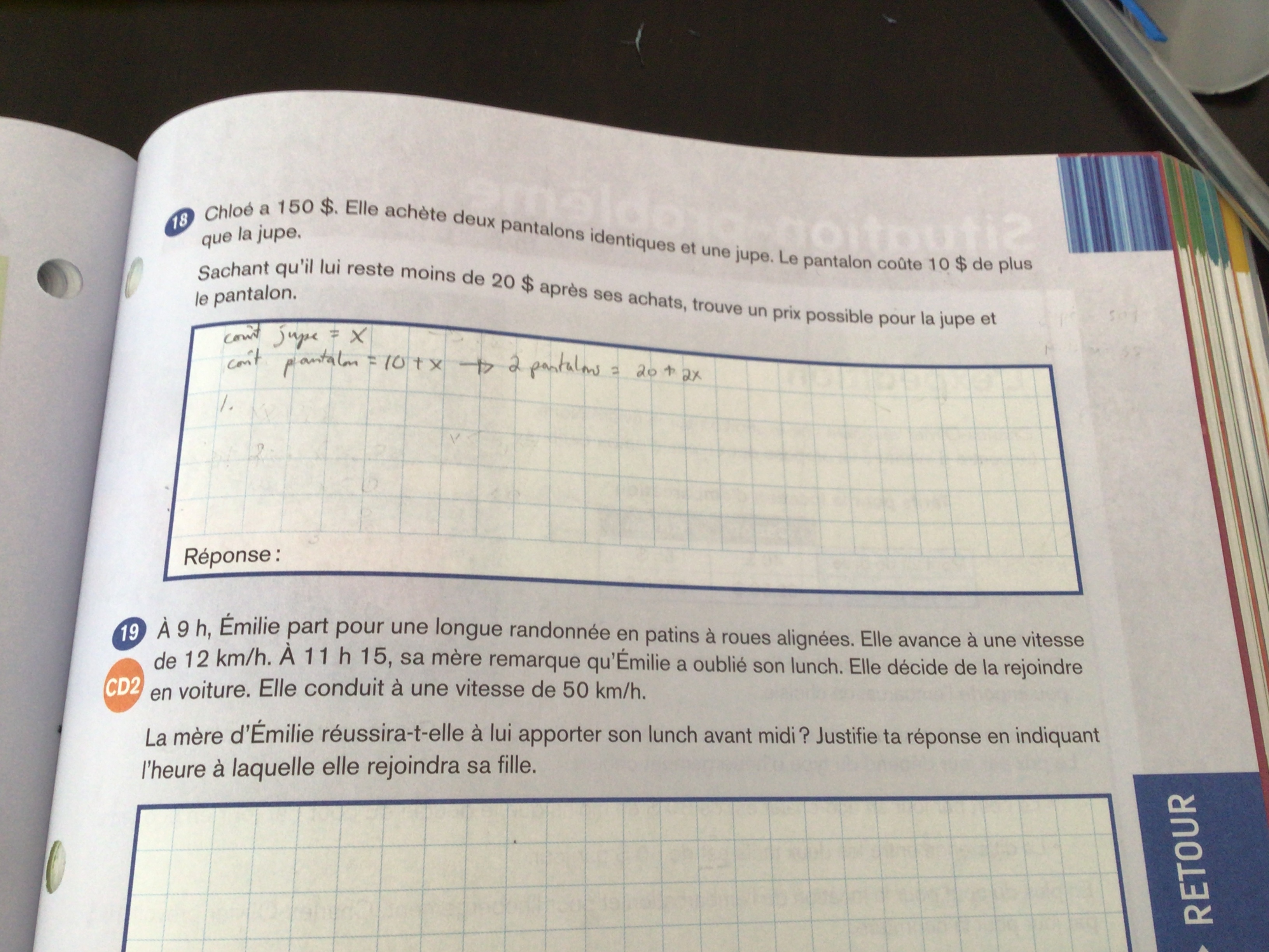 Secondaire 3 • 2aBonjour, j’ai eu cette réponse à ma question et c’est ça la démarche que j’ai fait à la place:Vous aviez dit qu’il lui reste minimum 20$, mais il ne lui reste pas maximum 20$? (Car ça dit il reste moins de)