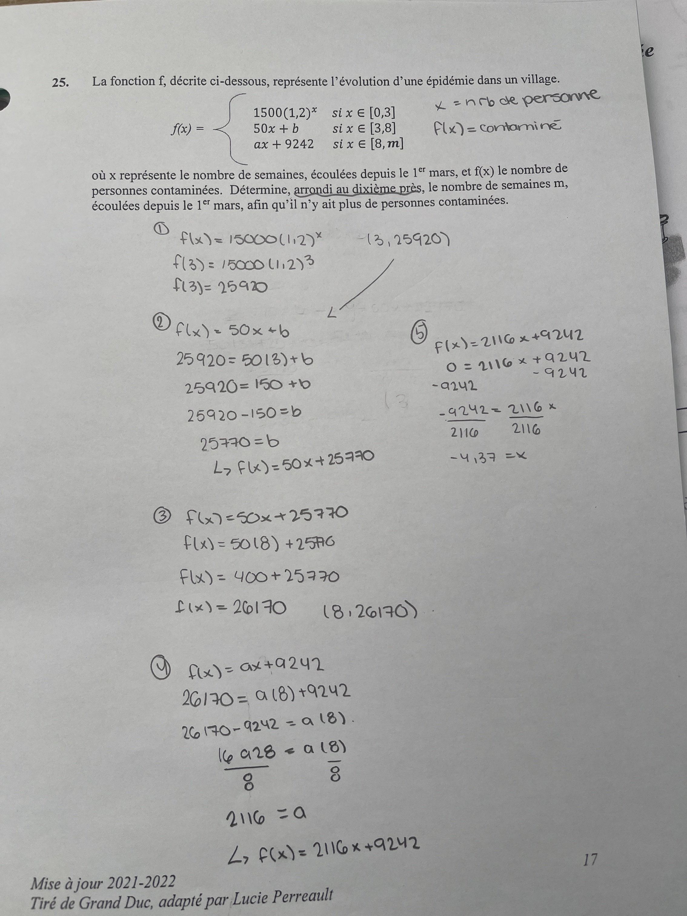Secondaire 4 • 2aVous dire que j’ai terminer mais il me manque ma réponse en semaine puis mon graphique n’est pas terminé je vous envoie également le corrigé de ma prof