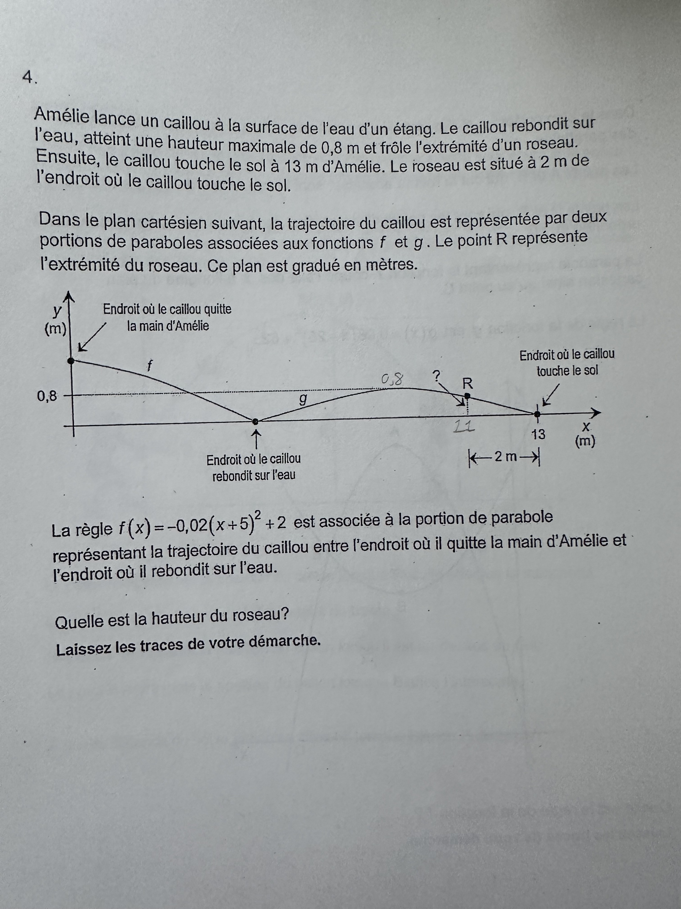 Secondaire 4 • 2aBonjour, je crois avoir compris qu’il faut que je trouve la règle de la parabole g mais il me manque une donnée j'ai l’impression. Quelqu’un peut-il m’aider?