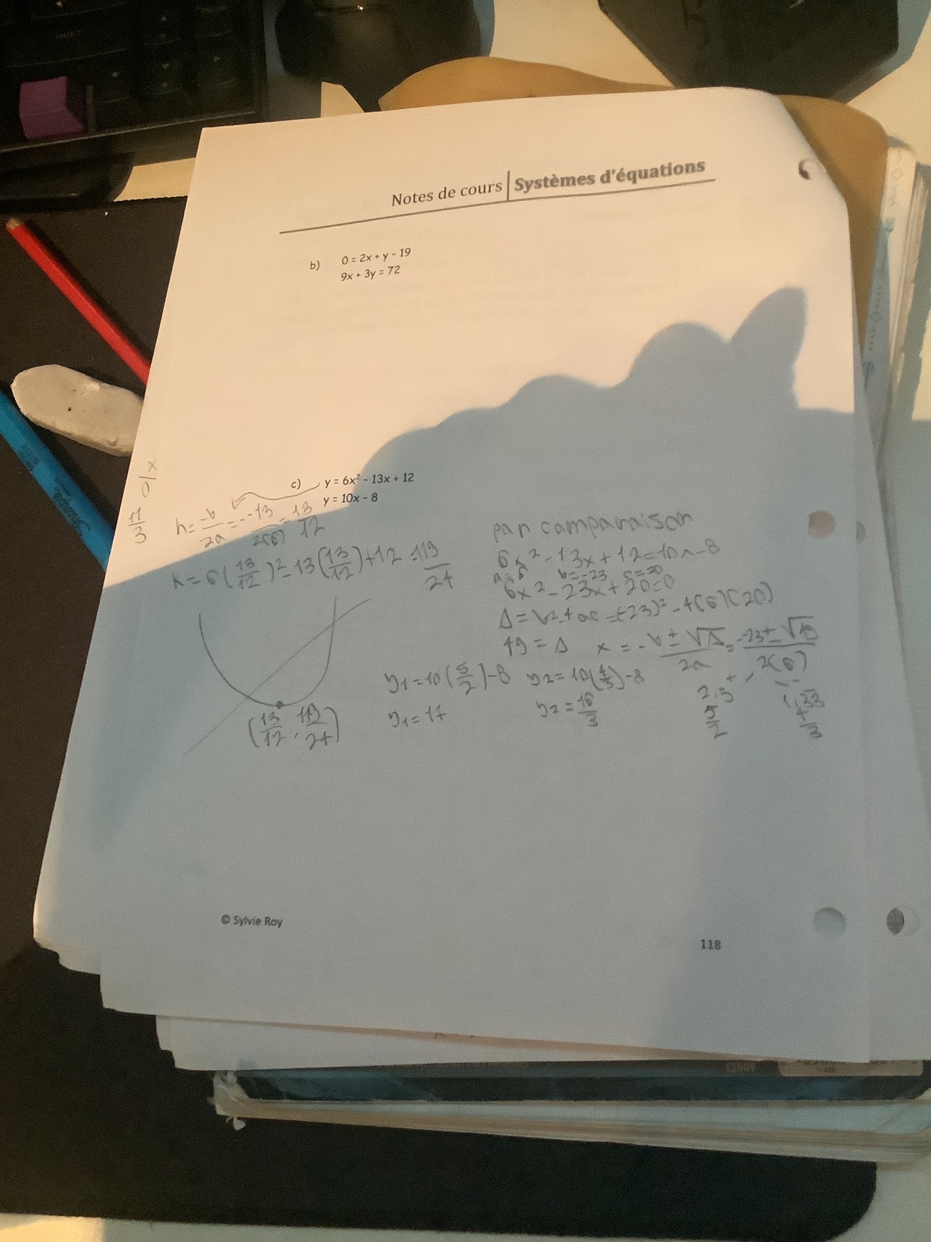 Et j'ai vu que j'ai la deuxième parabole. Mais je n'arrive pas à la résoudre.Merci