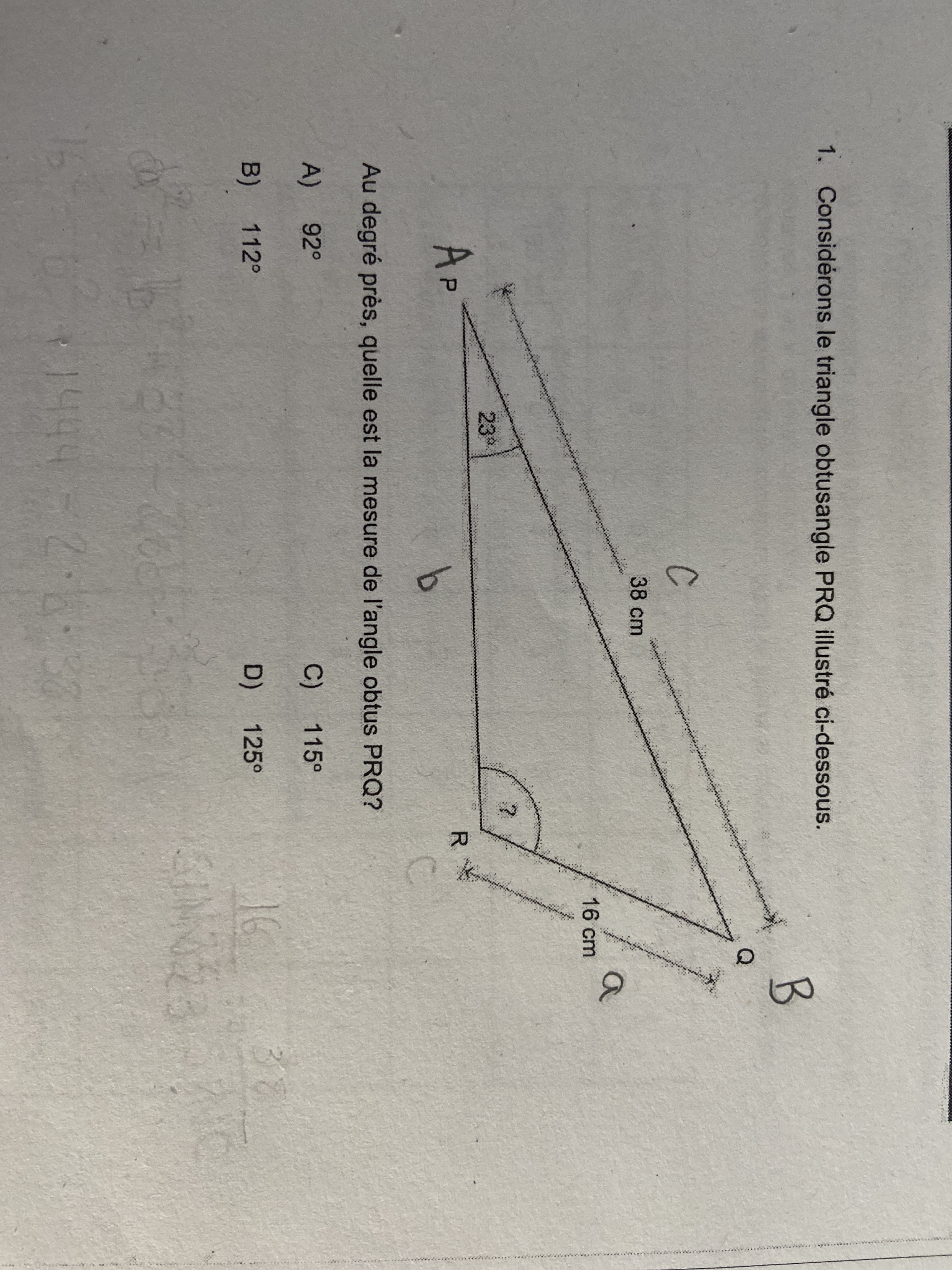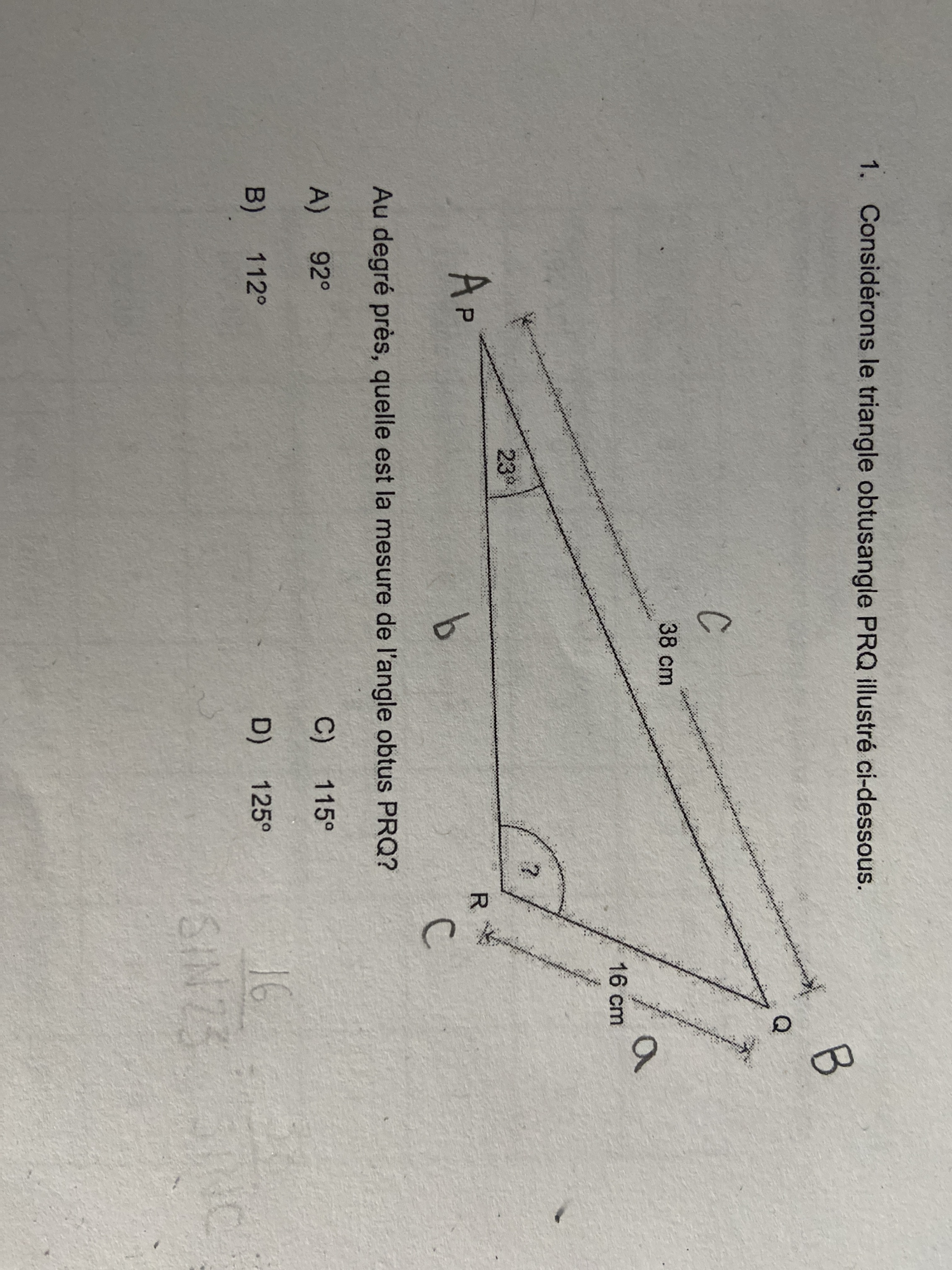 Secondaire 4 • 2aIl y a quelques minutes j’ai posé une question dans alloprof, j’ai été satisfaite de ma réponse seulement j’ai encore une question sur ce sujet : Pour résoudre ce problème, on m’a dit que je devais utiliser deux lois des cosinus, mais lesquelles ? Merci beaucoup 😊