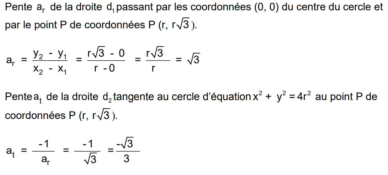 Postsecondaire • 2aBonjour, je voudrais comprendre la démarche et les étapes prise pour trouver l’équation de la droite tangente (Deuxième photo) Pourquoi ne pas substituer le point (r, r√3) dans la formule y=ax+b en incluent le taux de variation trouvé. Aussi, pourquoi la réponse montre-t-elle un taux de variation différent de celui déterminé précédemment? (Math 5173 2)