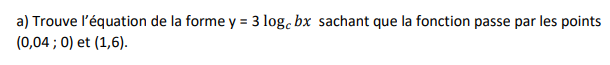 Je ne comprend rien à cette fichehttps://www.alloprof.qc.ca/fr/eleves/bv/mathematiques/trouver-la-regle-d-une-fonction-logarithmique-m1153#fonction-logarithmique-forme-y-aet à l'exemple donné "La valeur de a est connue Trouvez l'équation d'une fonction logarithmique dont la valeur du paramètre a vaut 4 et qui passe par les points ( 0 , 25 ; − 4 ) et ( 128 , 8 ) ."