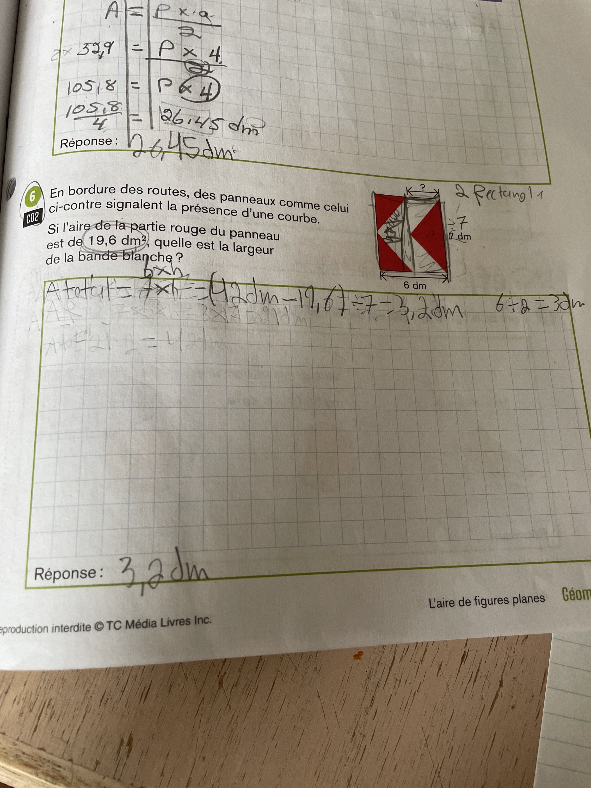 Secondaire 2 • 2aJe ne comprends pas comment on trouve l’air du gros rectangle.