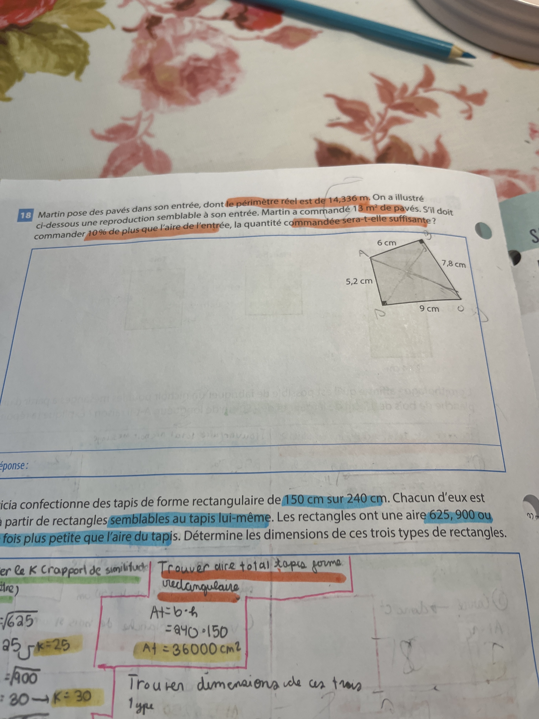 Secondaire 2 • 2aBonjour je ne sais pas comment trouver l'aire totale d'un pavé