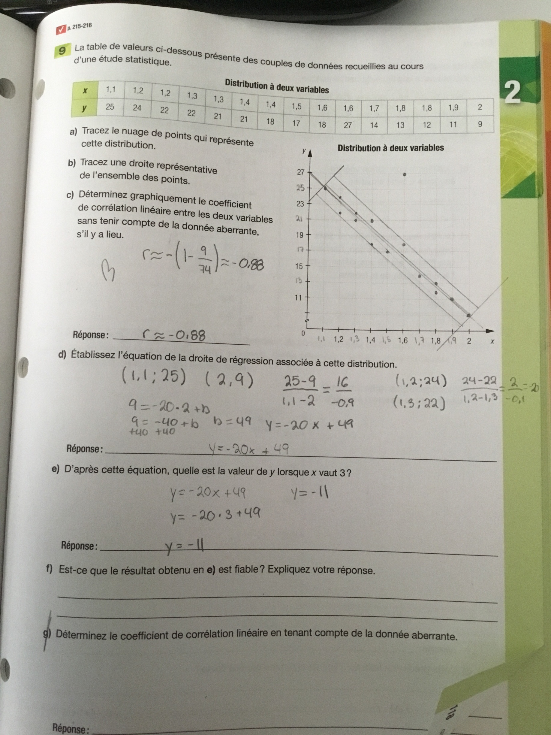 Mon corrigé dans mon cahier a beaucoup de fautes dans cette partie (Les coordonnées ne sont pas pareil). Est-ce que vous pouvez le corriger s.v.p.