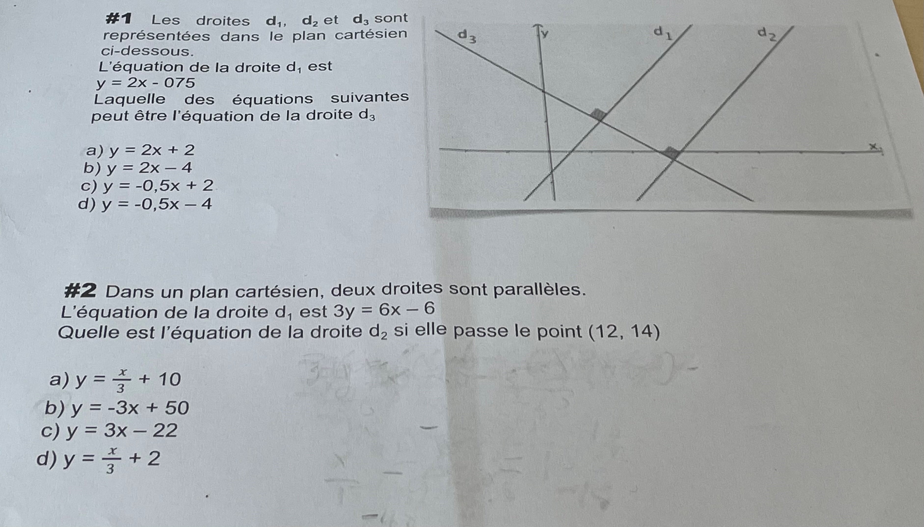 Secondaire 4 • 2aJ'ai de la difficulté a faire les deux premier numéro de géométrie analytique, de l'aide serais vraiment apprécié