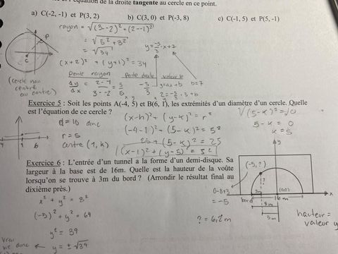 En math SN, dans le chapitre des coniques ( cercle), dans l'excercise 5, la reponse est