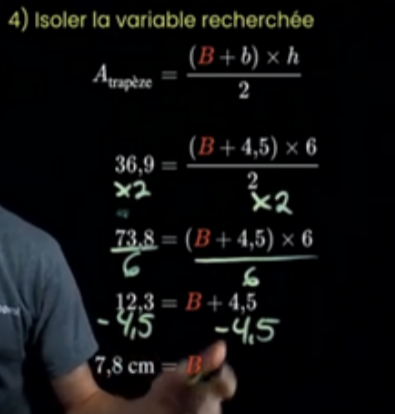 Secondaire 2 • 2aBonjour dans la vidéo de votre collègue j'ai pris en photo mais à la place de trouver la base et qu'il y a avait une mesure à la base.il fallait trouver l'hauteur pouvez vous me le montrer s'il vous plaît.