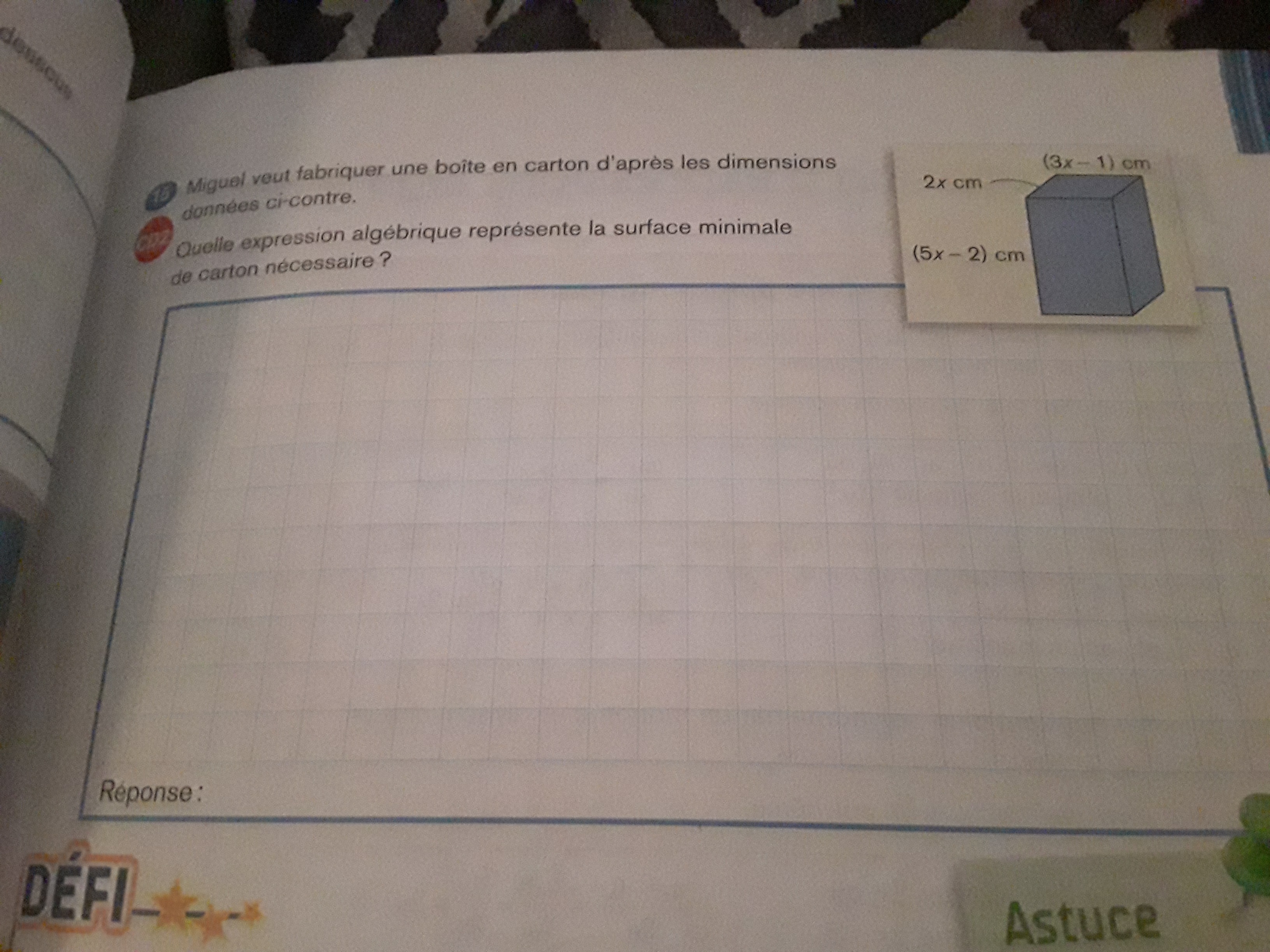 Secondaire 3 • 2aBonjour comment je peux trouver la surface minimale dans ce problème merci?