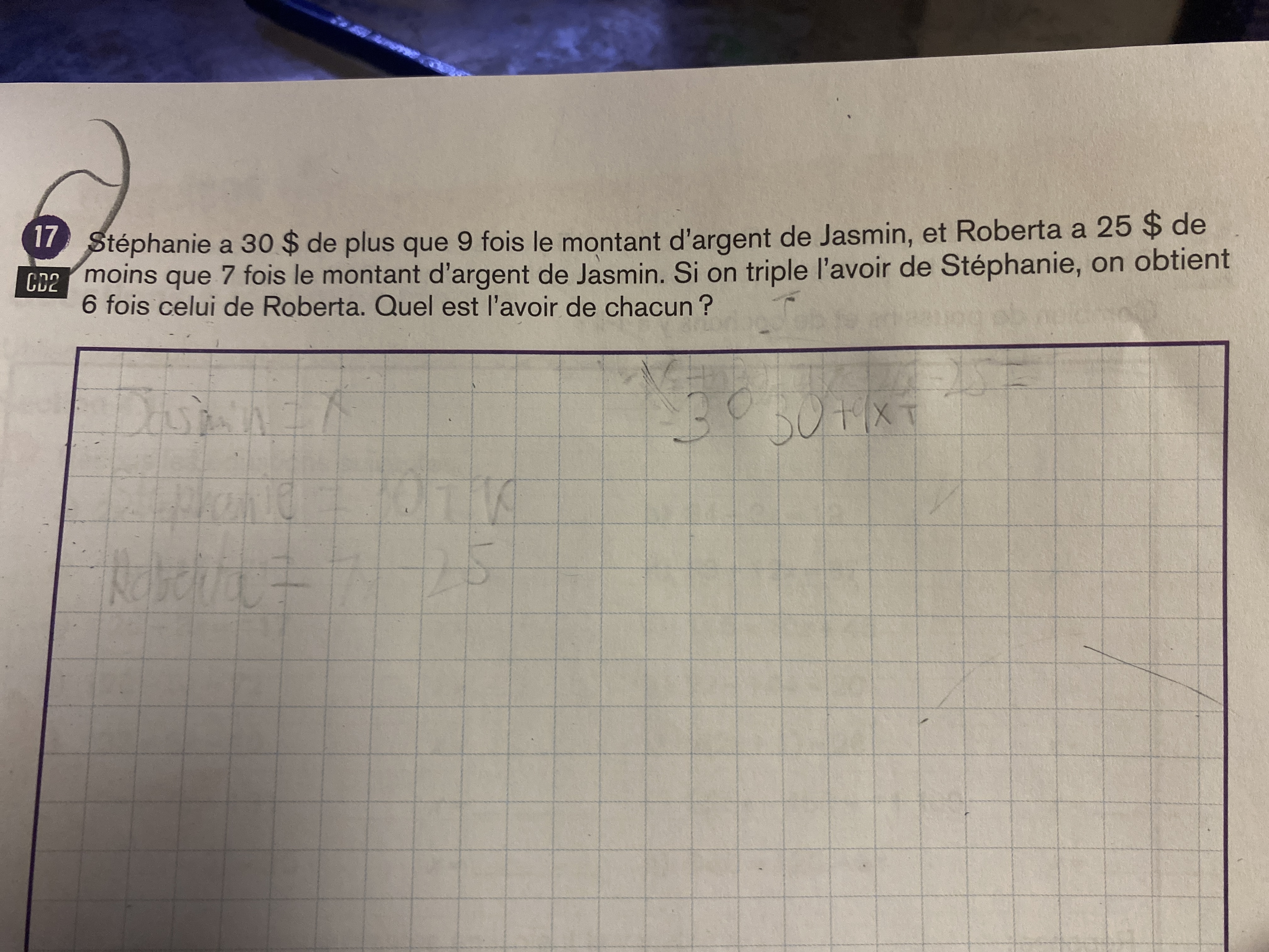 Secondaire 2 • 2aBonjour je ne comprend pas beaucoup ce problème. J’ai besoin d’une explication.
