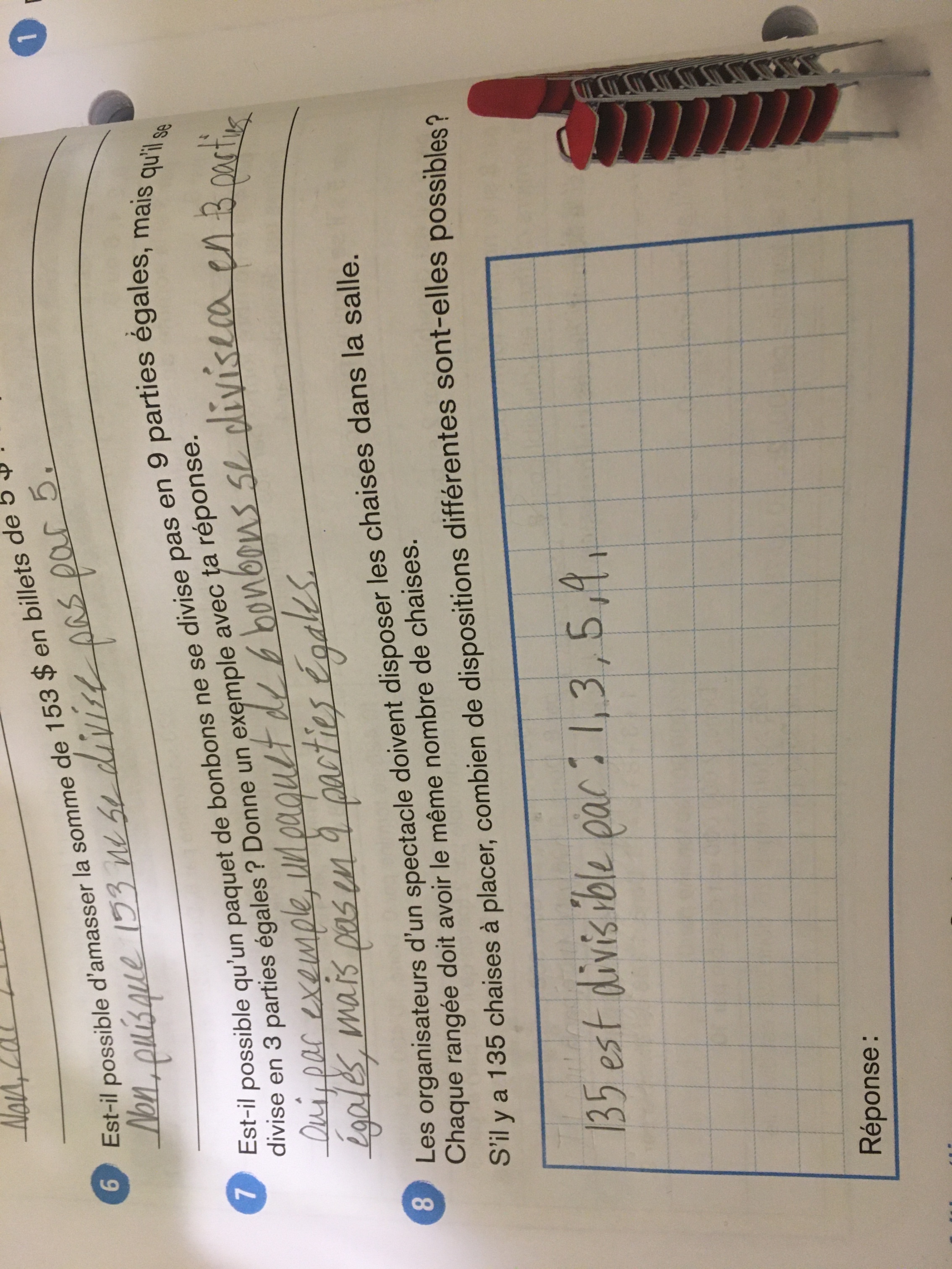 Voilà mon problème:Comme vous voyez, j’ai montré que 135 est divisible par 1,3,5, et 9, mais est-ce que je dois continuer et si oui, jusqu’où?
