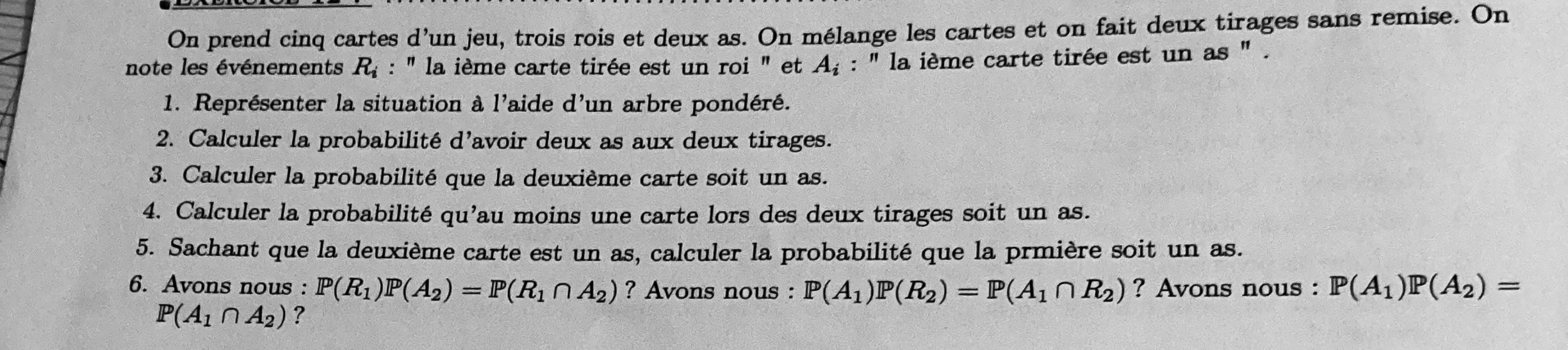 J'ai besoin de l'aide avec la question 1. a). Je sais que la réponse est 5/6 mais je comprends pas comment.