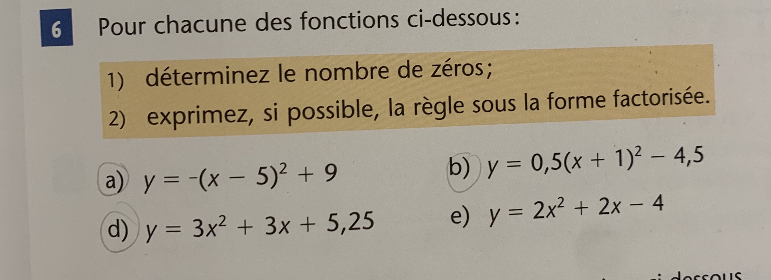 Secondaire 5 • 3aSalut, est-ce que vous pouvez m’expliquer comment trouver les zéros sans le diagramme dans une fonction quadratique ? Car je n’arrive pas à trouver un zeros même si je change le forme en factorisée.
