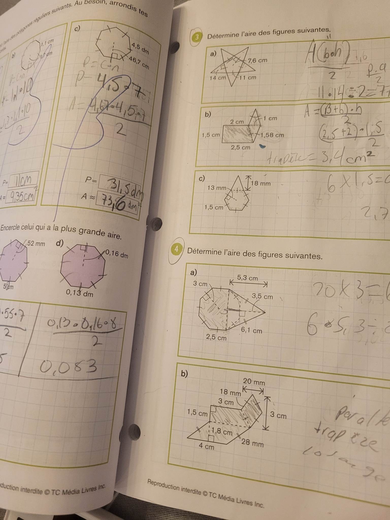 Secondaire 2 • 3aJ'Aimerais avoir une explication pour ce problème....numero 4a)....je dois trouver l'aire de cette figure
