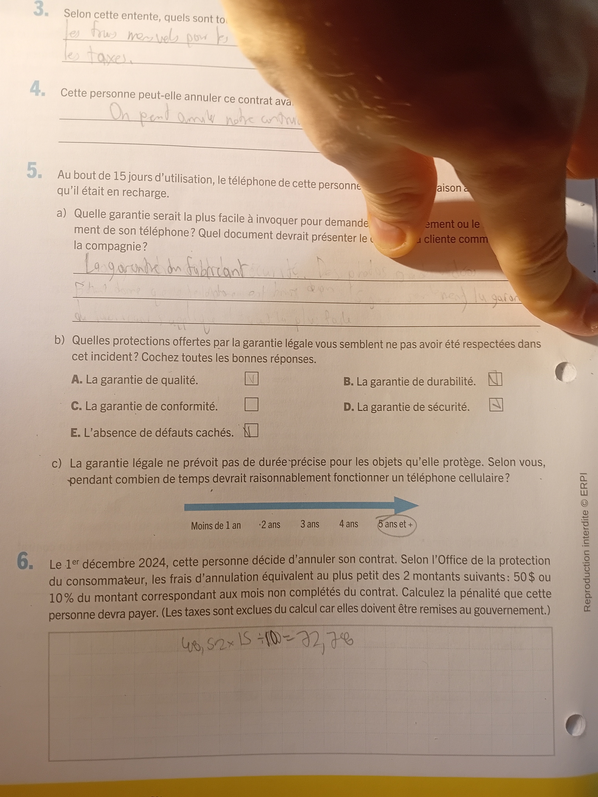 Secondaire 5 • 1mDans ce problème, où on a pris le le 48.52 et 15. Je trouve étrange qu'on n'a pas divisé par 100 et comment on a trouvé 72,78. Le numéro 6